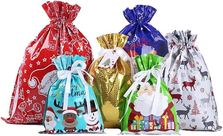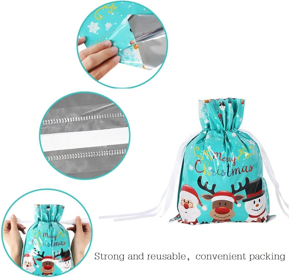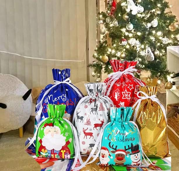 🎁【 durable】These holiday aluminum foil gift bags are made of PE, which are sturdy and durable. The drawstring design also makes it easier to use.