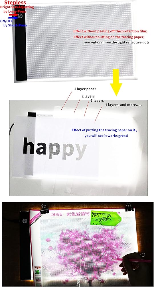 • 2. وسادة إضاءة محمولة وعملية - مادة قوية، خفيفة الوزن، سمك رفيع، مساحة العمل بحجم ورق ايه 5، قابلة للتعتيم بدون خطوات، ساطعة بما فيه الكفاية.
