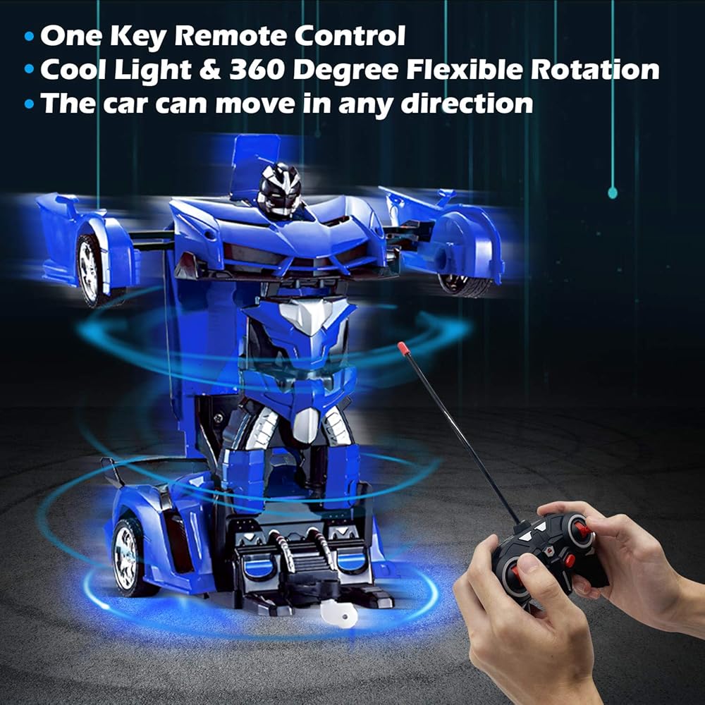 لعبة روبوت سيارة تحويل بجهاز تحكم عن بعد من AMENON للأولاد والأطفال والمراهقين مع أضواء سيارة RC 2.4 جيجا هرتز 1:18 قابلة للشحن تدور 360 درجة ألعاب سباق سيارات للأطفال والبنات (أزرق)
