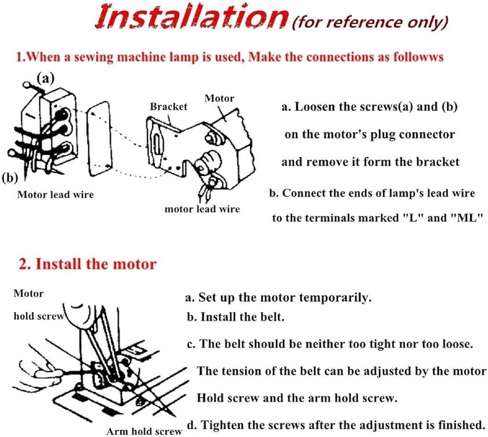 الإعداد: يناسب معظم الآلات القديمة حيث يتم تثبيت المحرك على جانب الجهاز أو أسفل عجلة الطيران مثل Singer 15، HA1،66، 99، 185، 285، 293B، 206، 306، 319، 238، 239 ، 242، 247، 248، 252، 257، 258 وأكثر. يناسب معظم الآلات اليابانية بمحركات خارجية.