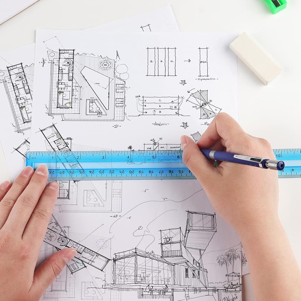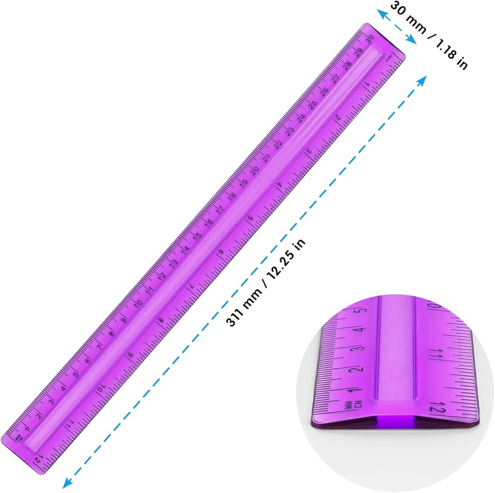 2 مسطرة بلاستيكية للقياس الجانبي: مثالية لأي مهام قياس أساسية حيث أنها تتميز بالقياسات الإمبراطورية والمترية.