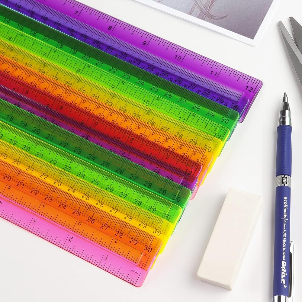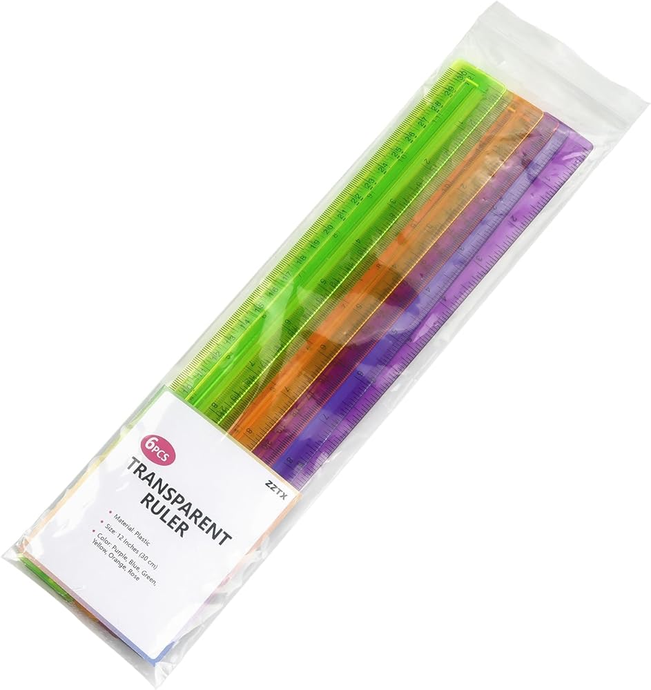تتضمن العبوة: مسطرة شفافة ملونة مقاس 12 × 12 بوصة