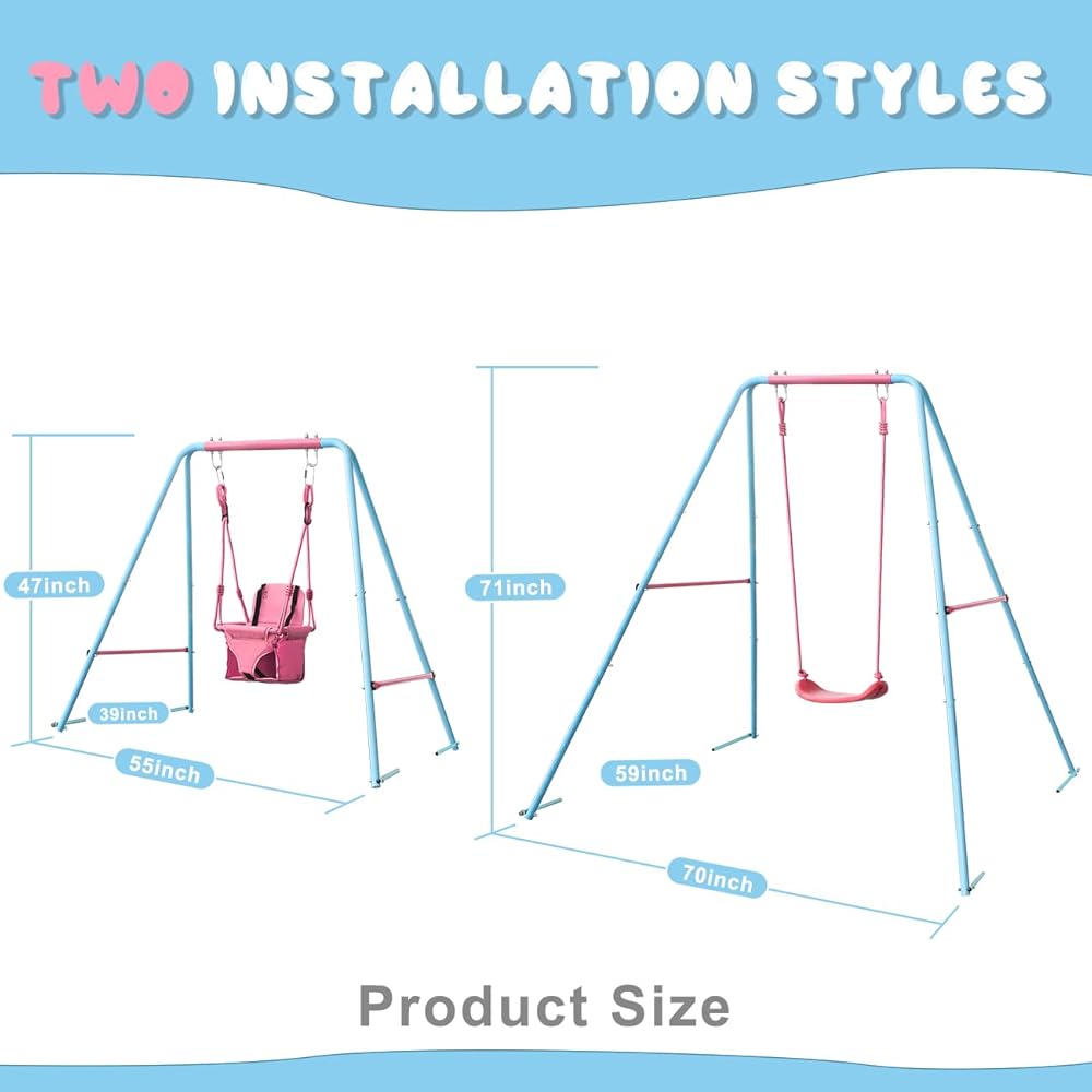 مناسبة للاستخدام في الهواء الطلق: الأبعاد المجمعة: 124 بوصة طول × 54.25 بوصة عرض × 69 بوصة ارتفاع. سعة الوزن (لكل مقعد): 100 رطل. لا يلعب أكثر من 6 أطفال معًا. أراجيحنا مناسبة للوضع في الساحات الخلفية والحدائق والمتنزهات وملاعب كبيرة .
