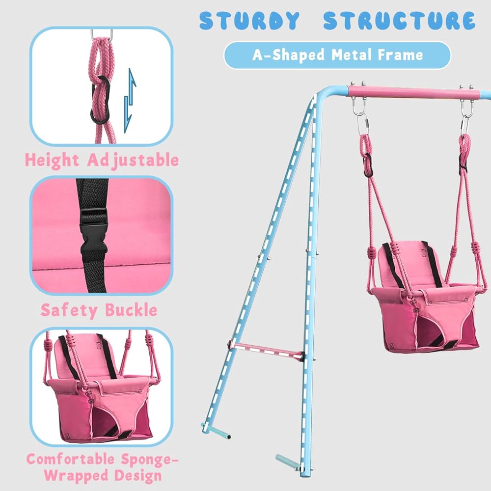 مجموعة أرجوحة قوية وآمنة ومتينة: إطار أرجوحة معدني مصنوع من أنابيب فولاذية شديدة التحمل مقاومة للطقس مع لمسة نهائية من الطلاء المطلي بالمسحوق، والتي تتميز بمقاومة ممتازة للصدأ والتآكل والتآكل. يضمن تصميم الإطار A متانة إضافية. تتكون أرجوحة المنصة من سلسلة مجلفنة قوية ومقعد من القماش عالي الكثافة، وتتميز بمقاومة قوية للأشعة فوق البنفسجية ولن تتلاشى لسنوات عديدة.