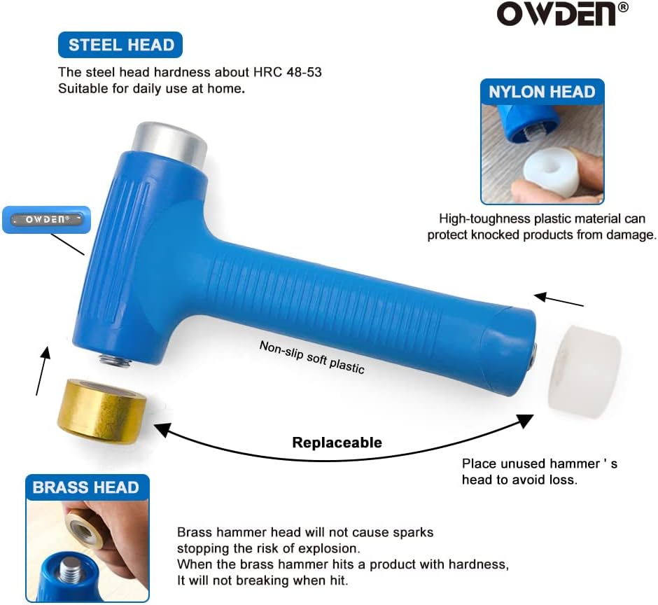 المطرقة الحرفية لها 3 رؤوس للاستخدام، رأس المطرقة الصلب مثبتة على جسم المطرقة. سوف تستبدل رؤوس المطرقة المصنوعة من النحاس والنايلون عند الضغط على أدوات مختلفة. هذه المطرقة المهنية الأساسية للفنانين (حاصلة على براءة اختراع)