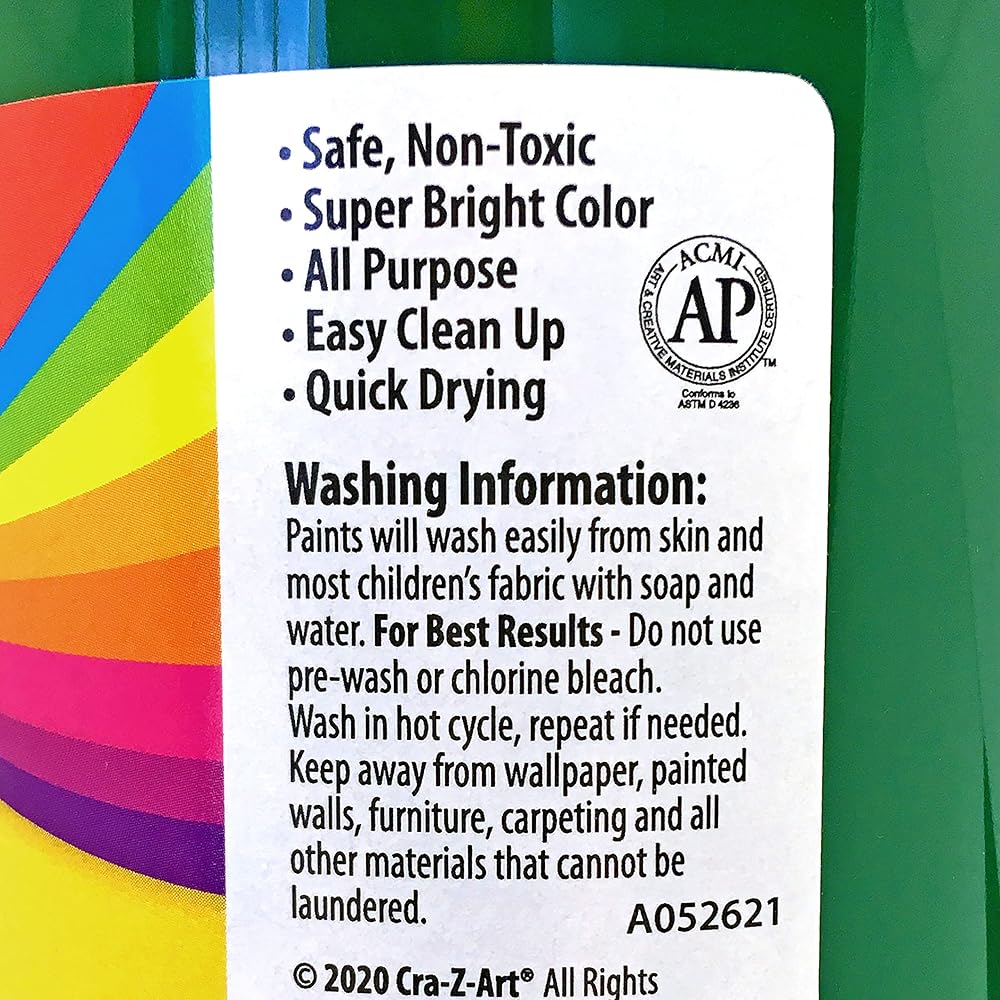 الإبداع لا نهاية له. مثالية للفصول الدراسية والمشروعات الكبيرة وحفلات أعياد الميلاد والمزيد! لا تخف من حدوث خطأ - يمكن غسل طلاء درجة الحرارة هذا عن الجلد ومعظم الأسطح بالماء والصابون. اللون نابض بالحياة وينساب على أسطح متعددة. أطلق العنان لإبداعك مع هذا العرض القيم من الطلاء القابل للغسل! كن مبدعا، واحصل على الألوان!