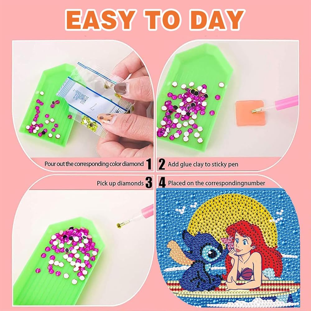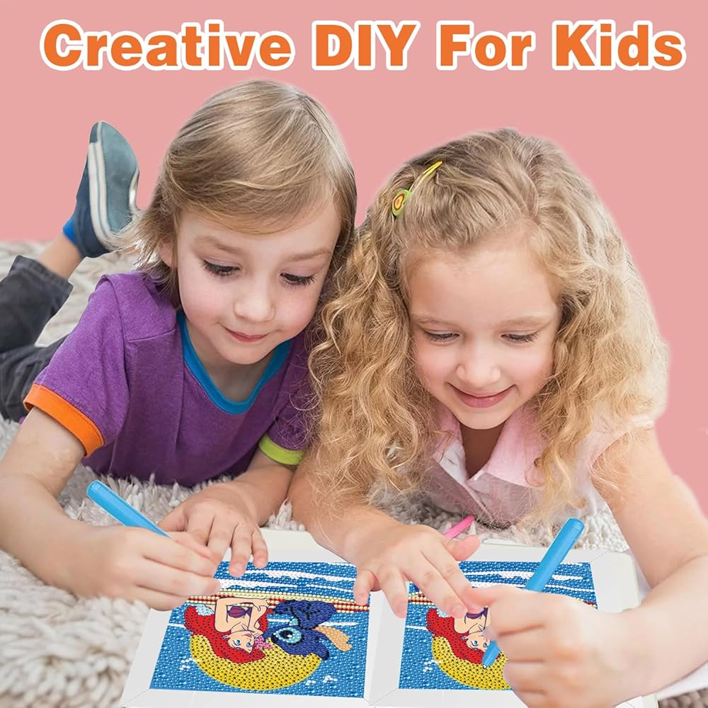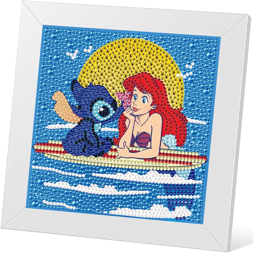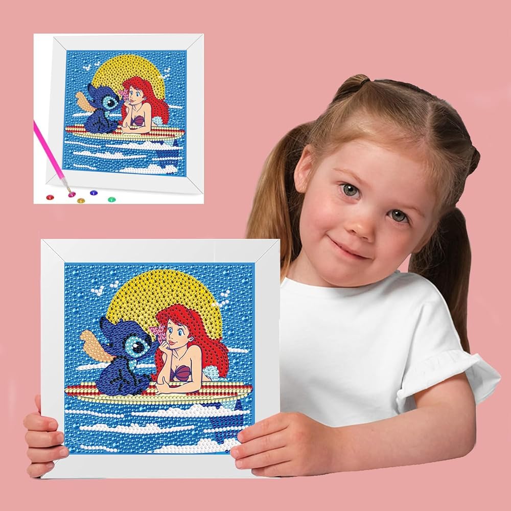 Stitch Diamond Painting for Kids, 5D Princess Diamond Art Mini Small Kit with Frame, DIY Cute Cartoon Big Gem Painting Set, Paint by Diamonds Crafts for Girls Boys Ages 4-12,Stitch and Princess Gem Art Kits 6X6 inch