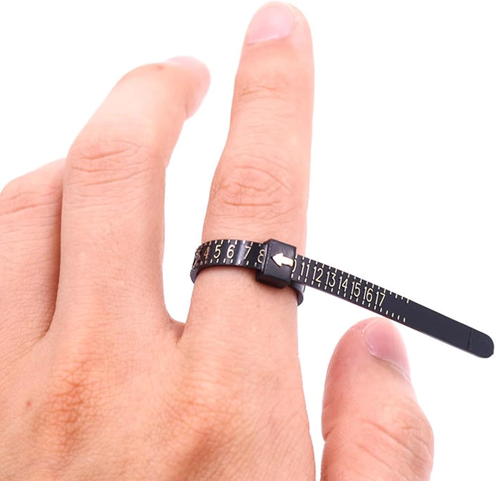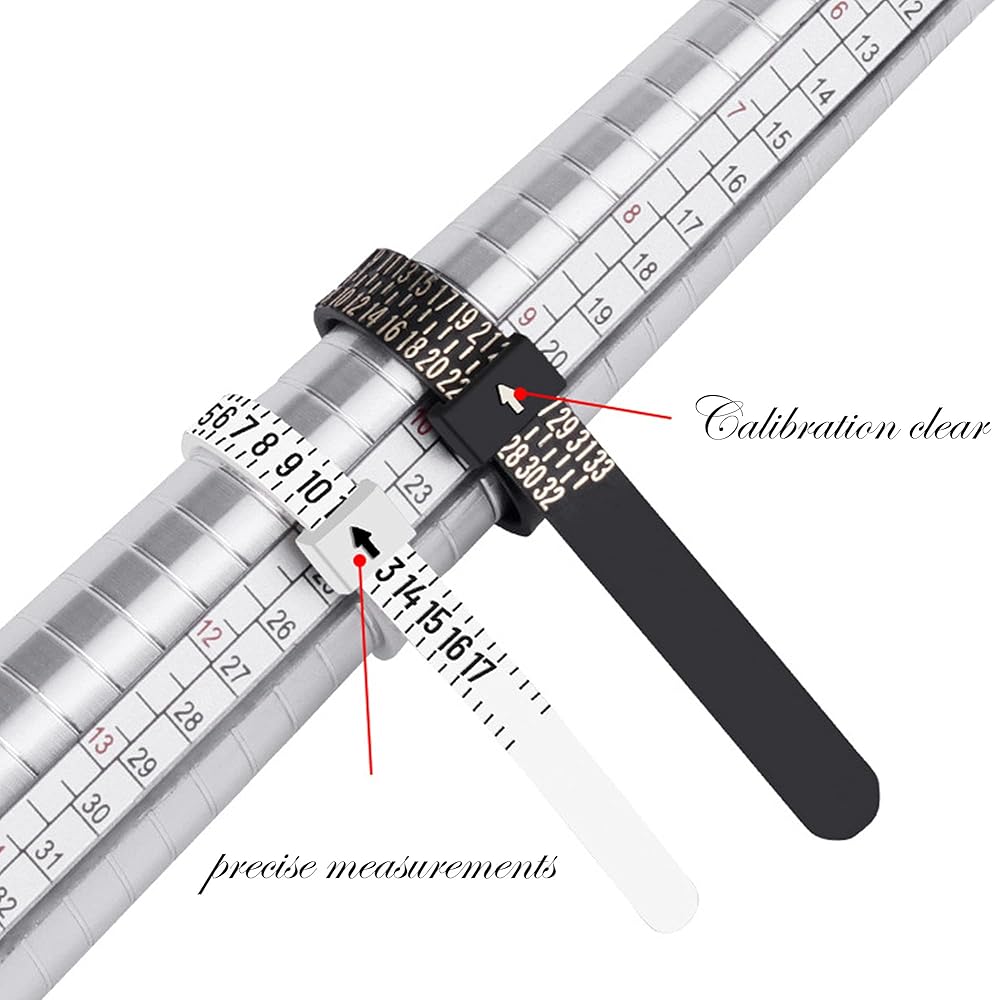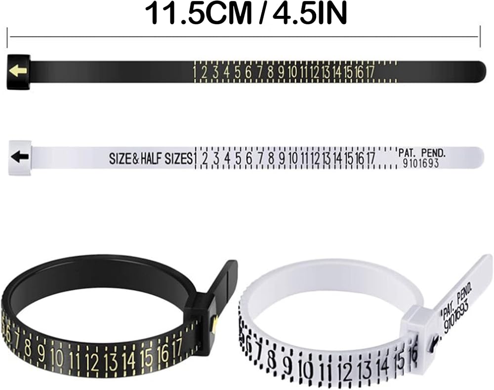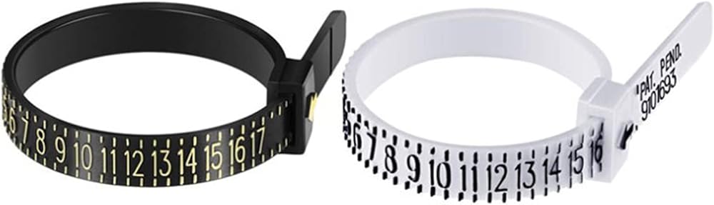 أدوات قياس الحلقة: سوف تحصل على أداتين لقياس حجم الإصبع بمقاسات 1-17 (المقاسات الأمريكية). إعادة الاستخدام، بلاستيك مريح، 1 أبيض و1 أسود.