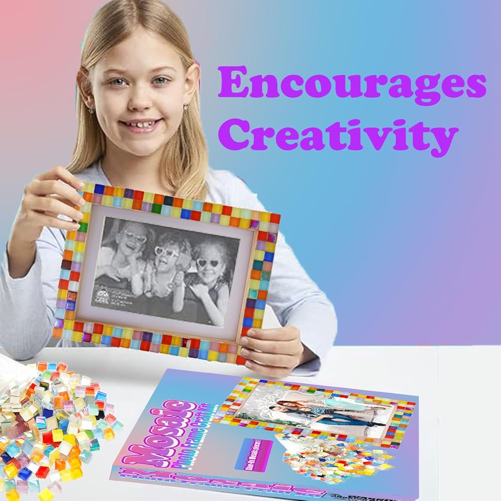 تزيين مجموعة أدوات إطار الصورة الفسيفسائية الخاصة بك، والحرف اليدوية للفتيات من سن 6 إلى 8 سنوات، والفنون والحرف اليدوية للأطفال من سن 8 إلى 12 عامًا، والحرف اليدوية الممتعة للفتيات 6 7 8 9 10 11 12 عامًا فكرة هدية عيد ميلاد