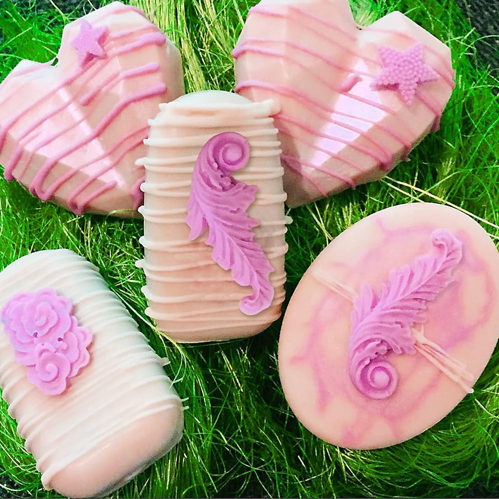 【استخدامات متعددة】 قوالب الشوكولاتة هذه مناسبة لصنع الفوندان والحلوى والشوكولاتة والكب كيك والبسكويت والسكر والفدج والثلج والزبدة وصلصال تشكيل الجيلي والراتنج (راتنج الايبوكسي وراتنج الريثان وراتنج الأشعة فوق البنفسجية) والمعجنات لحفلات الزفاف وأي مناسبات حفلات وما إلى ذلك.