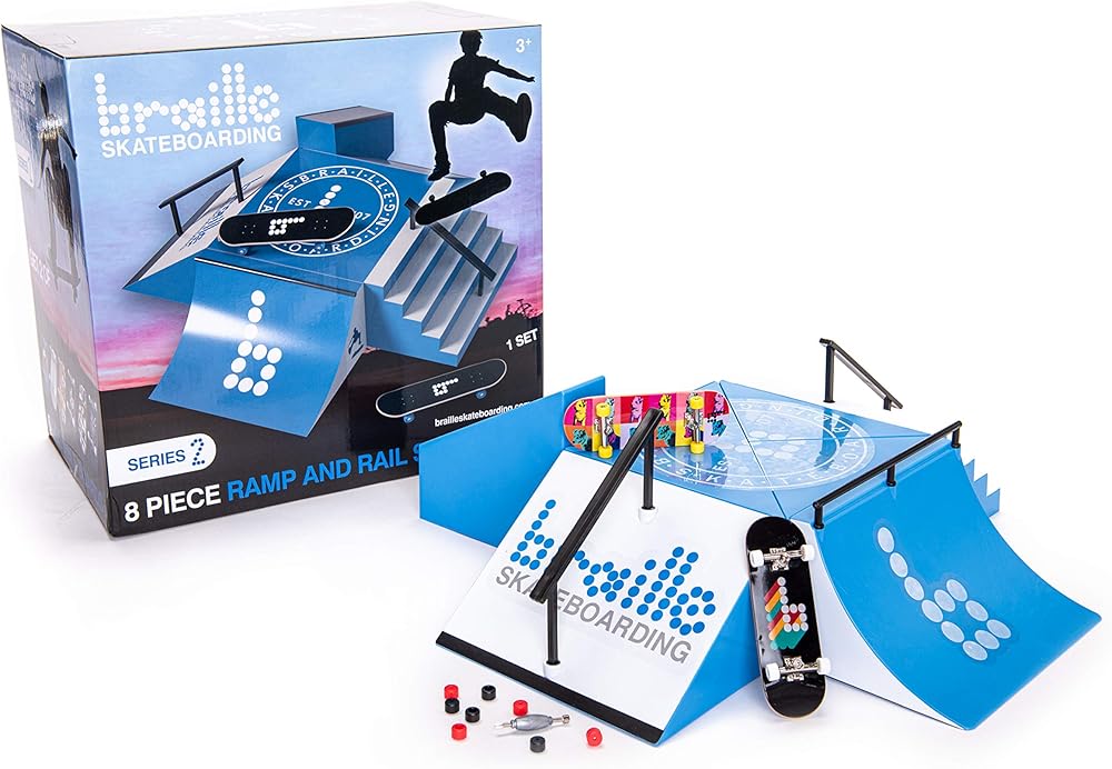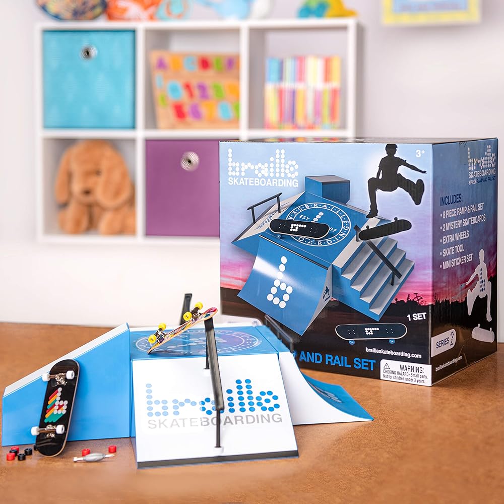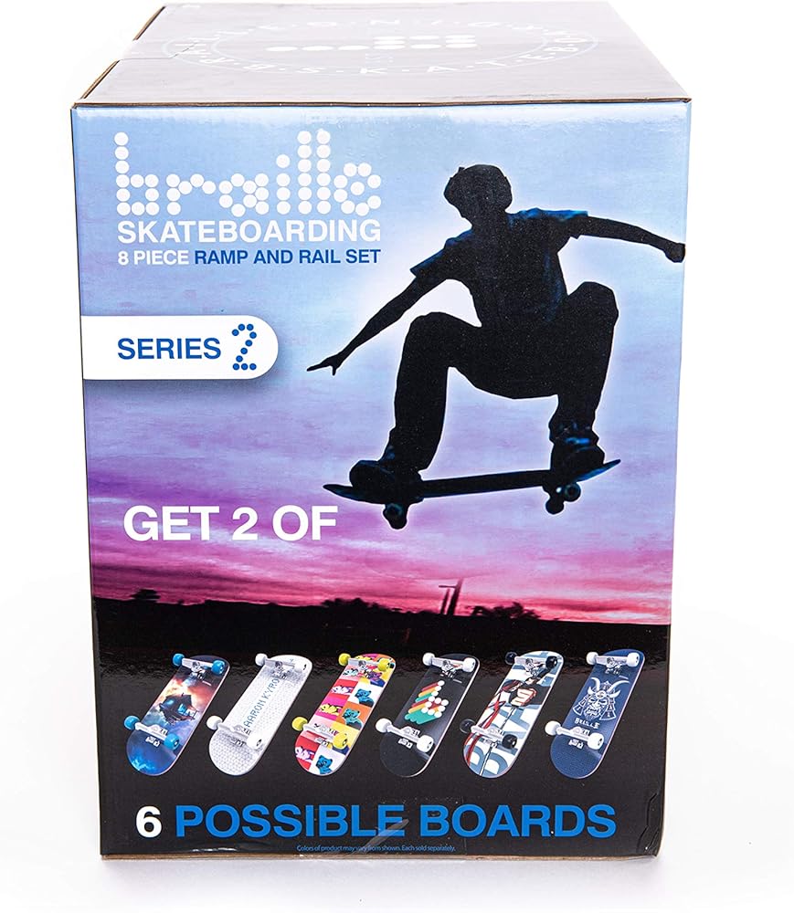 برايل سكيهت بوردنج مجموعة لعب سكيت رامب - السلسلة 2: مستوحاة من سكيت ايفري ثينج، يوتيوب، حديقة تزلج، 4 منحدرات، 2 لوح اصبع، 8 عجلات، ادوات، ملصقات؛ فتح العلبة؛ لعبة غامضة