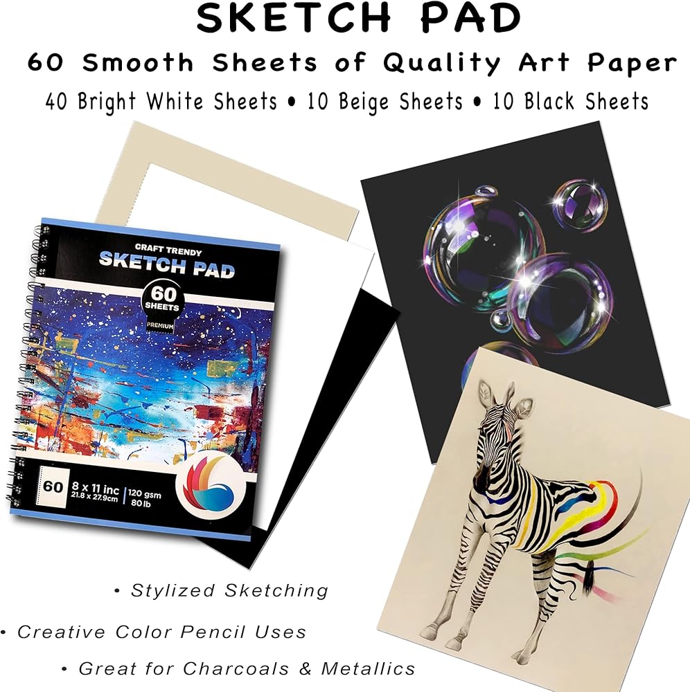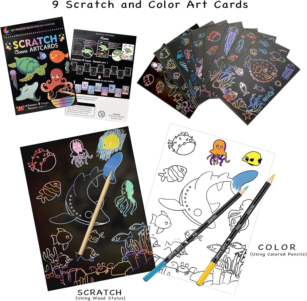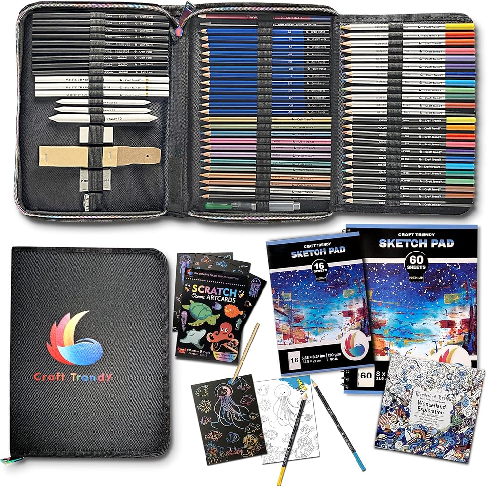 مجموعة فنية رسم 2 في 1 من كرافت تريندي 75 ورقة خدش، كتاب تلوين، 3 كراسات رسم ملونة، كراسة رسم صغيرة للمبتدئين والمحترفين: الاطفال والمراهقين والكبار. برنامج تعليمي للجميع