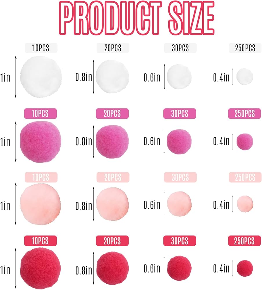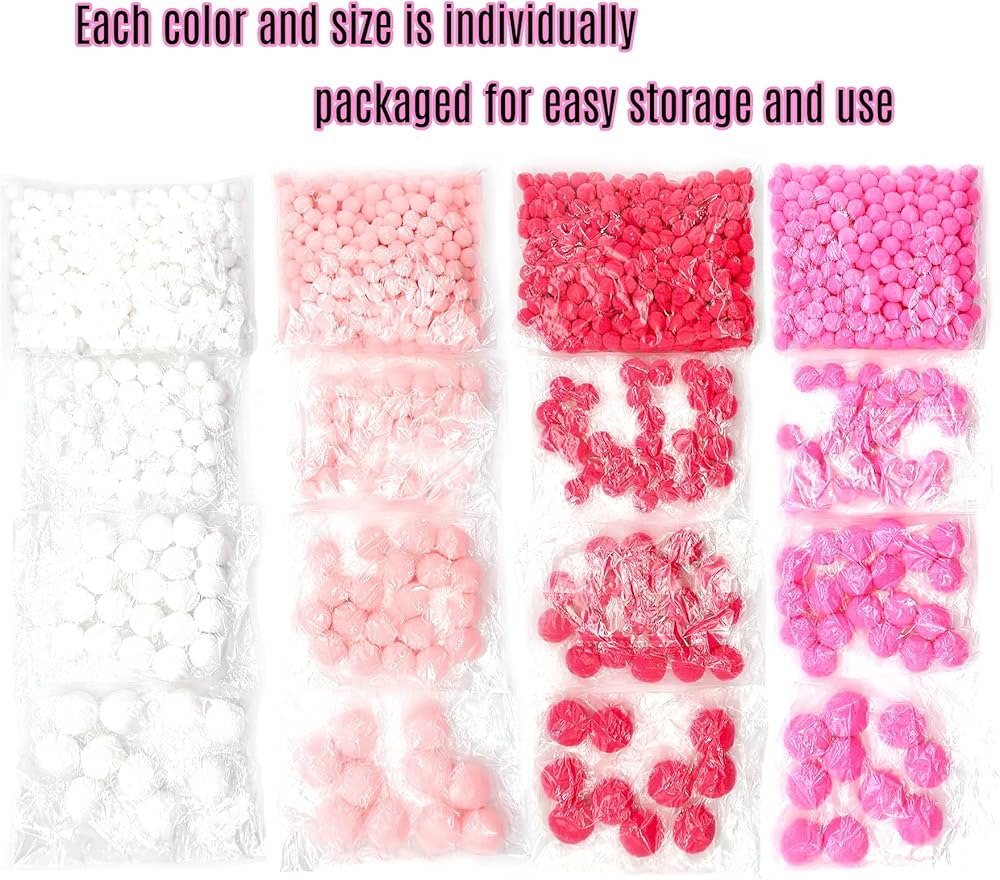 • 4 ألوان و4 مقاسات - تتضمن العبوة 1240 قطعة من كرات بوم بوم الحرفية؛ 4 ألوان بوم بوم وكل لون له 4 مقاسات مختلفة، بما في ذلك 10 قطع مقاس 1 بوصة/2.5 سم، و20 قطعة مقاس 0.8 بوصة/2 سم، و30 قطعة من 0.6 بوصة/ 1.5 سم و250 قطعة مقاس 0.4 بوصة/ 1 سم، كمية كبيرة لتلبية صنع الألعاب والأكاليل والهدايا والقلائد والمزيد. يتم تعبئة كل لون وحجم بشكل فردي لسهولة التخزين والاستخدام.