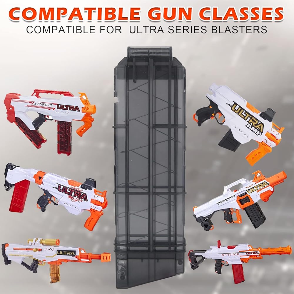 - تتوافق هذه المجلة مع مسدسات سلسلة NERF Ultra، وهي رائعة كهدية للأطفال