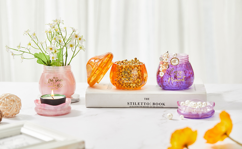 【استخدام واسع】: يمكن استخدام قوالب الراتنج المصنوعة من السيليكون كزجاجة تخزين وحوامل فرش المكياج وحاويات الشموع والعلاج العطري وبرطمانات البودينغ والمزهريات وصناديق تخزين المجوهرات والديكورات وما إلى ذلك. يمكنك أيضًا تقديمها لعائلتك وأصدقائك كهدية لعيد الشكر أو رأس السنة أو عيد الحب أو الهالوين أو عيد الأم أو أعياد الميلاد، وسيكونون سعداء ومحبوبين للغاية