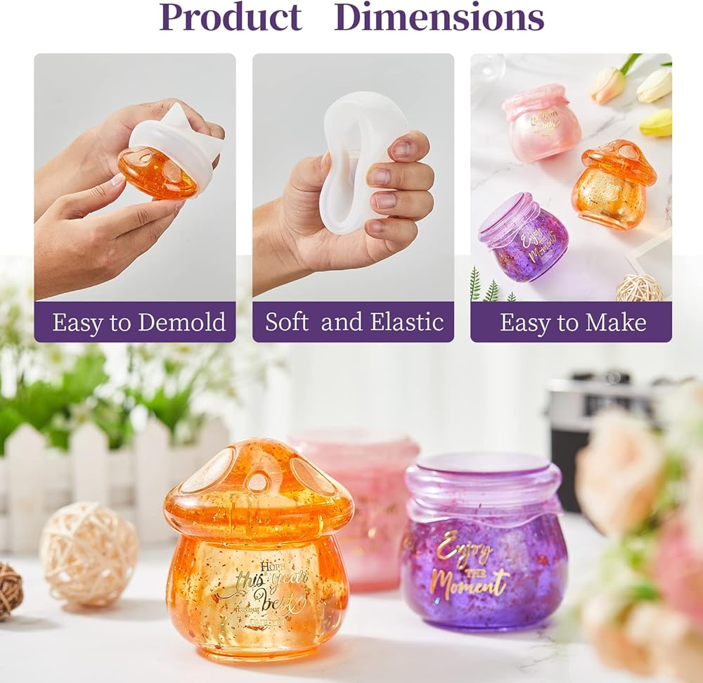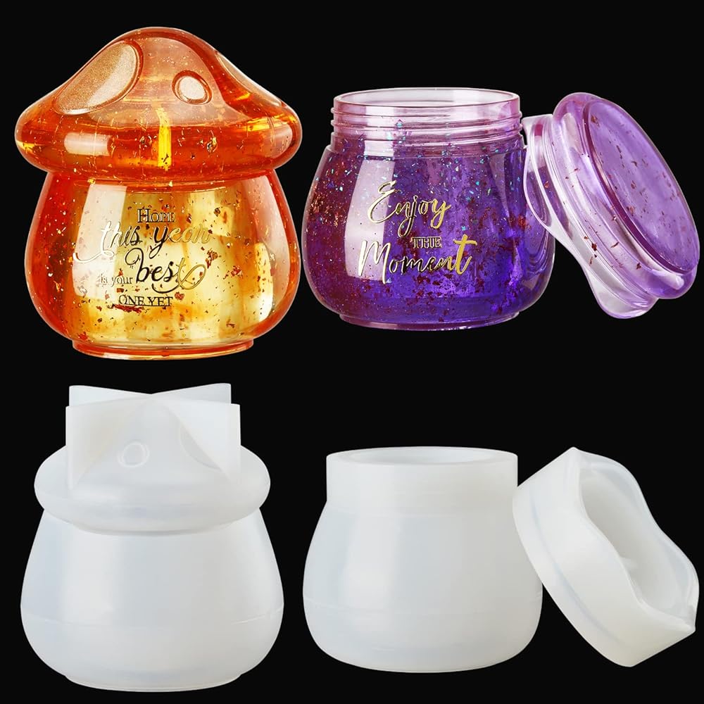 مجموعة قوالب راتنج سيليكون بتصميم فطر مع غطاء، قوالب راتنج ايبوكسي من السيليكون لزجاجة التخزين التي تصنعها بنفسك، حاوية الحلوى، حاوية مجوهرات، قوالب برطمان لراتنج الايبوكسي مع غطاء من قطعتين