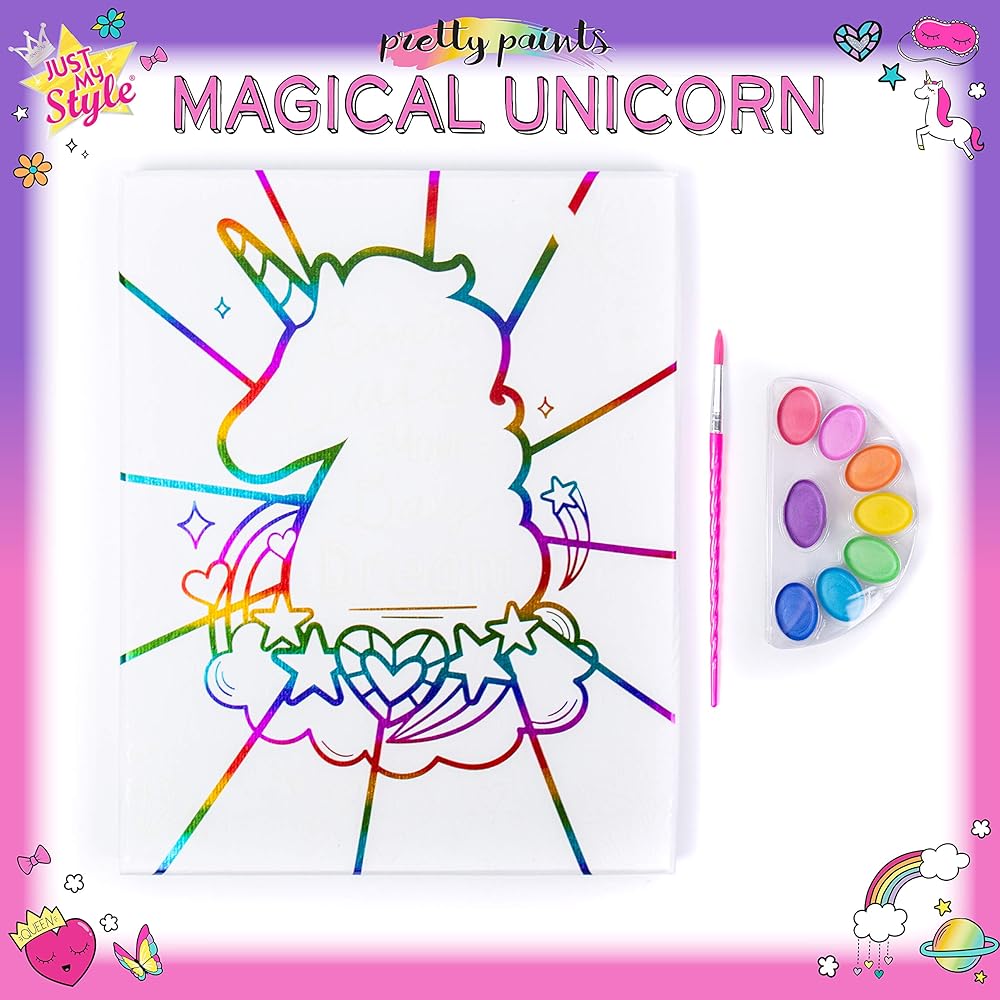قم برسم بعض الأشياء المفضلة لديك لتنبض بالحياة مع مجموعة قماش يونيكورن السحرية الكل في واحد من Just My Style®! مكتمل بلوحة قماشية جاهزة للطلاء ومطبوعة مسبقًا و12 طلاءًا مائيًا نابضًا بالحياة وفرشاة رسم لإضفاء الحيوية على كل شيء - لم يكن إثارة الاهتمام بالإبداع أسهل أو أكثر أناقة من أي وقت مضى! اكتشف فن مزج الألوان أثناء قيامك بإنشاء أنظمة ألوان وأشكال وأنماط مختلفة على وحيد القرن - واعثر على مفاجأة مفعلة بالألوان المائية داخل التصميم! بعد ذلك، اترك قماشك يجف طوال الليل قبل عرضه على الشاشة!