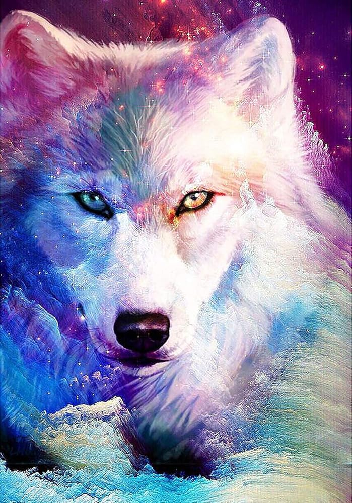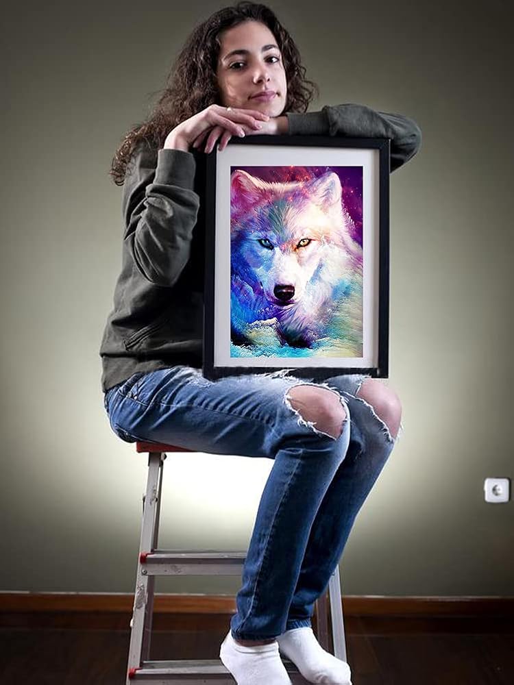مجموعات الرسم الماسي من سلسلة حيوانات Beaudio للبالغين - Wolf King - حفر كامل دائري DIY فن ماسي 5D لديكور الحائط المنزلي (11.8 × 15.7 بوصة)