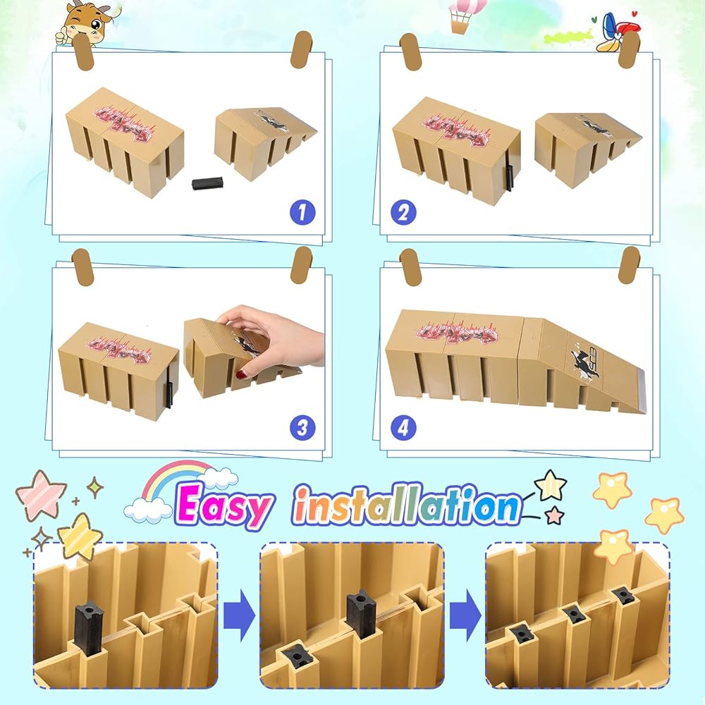 مكان تدريب متنوع على التزلج: يتكون منحدر لوح الأصابع من منصة طويلة ومنحدرات متعددة ودرابزين وسلالم، لا يسمح لك تصميم الموقع الغني والمتنوع بتجربة التزلج بالأصابع المتعددة فقط، وتحسين مهارات التزلج بالأصابع والقدرة على التنسيق بين اليد والعين، والتي يمكن تركيبها بالرجوع إلى تعليمات التركيب