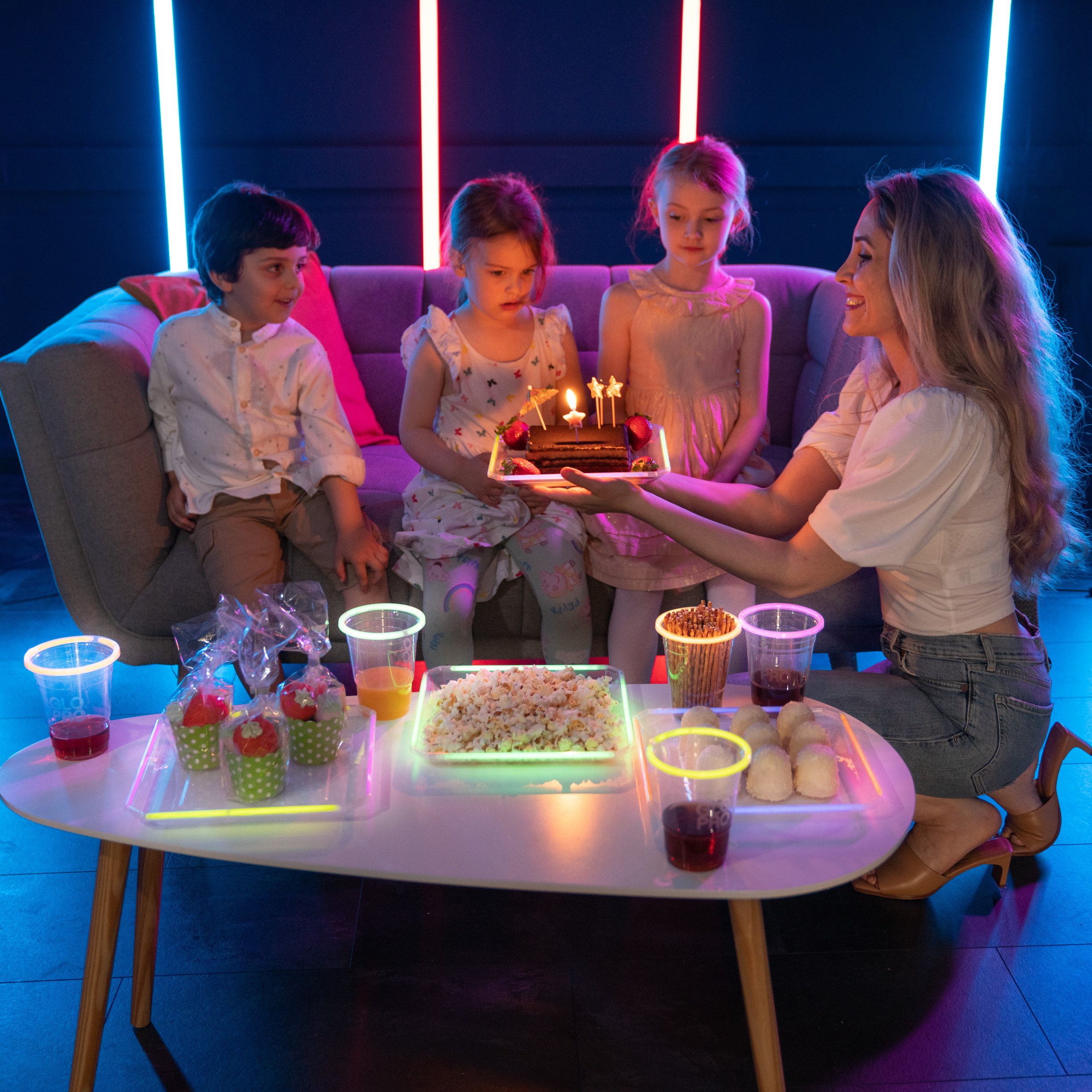 • توهج مجنون: تألق أكثر إشراقًا مع لوازم الحفلات جلو برو Glow in the dark. تضيف أطباق الحفلات المتوهجة هذه نمطًا نيون ممتعًا إلى طاولة الوجبات الخفيفة الخاصة بك مع 7 ألوان قابلة للمزج والمطابقة.