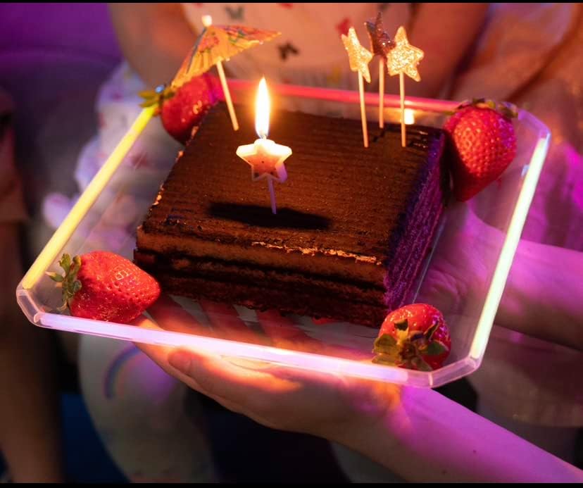 • فائقة القوة: أطباق الحفلات المتوهجة في الظلام مصنوعة من بلاستيك عالي التحمل وآمن غذائيًا. بالإضافة إلى ذلك، فإن طبق الحفلات المربع مقاس 10 انش كبير بما يكفي لتقديم عشاء كامل.