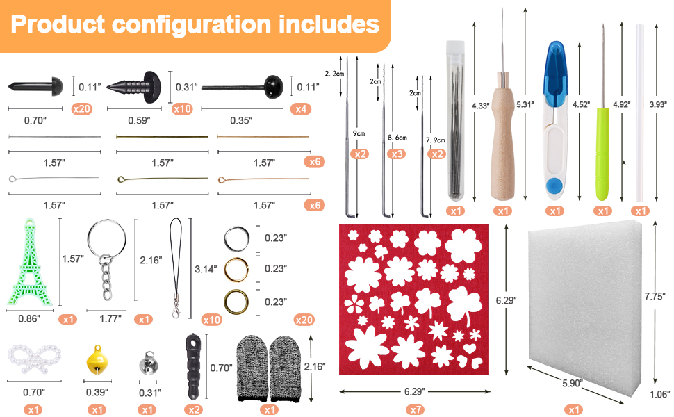 • تغليف أدوات التلبيد الرائعة: يتم وضع كل لون في حقيبة منفصلة سهلة الاستخدام والحمل. ومعظم أدوات التلبيد بالإبر موجودة في علبة بلاستيكية شفافة يسهل التحكم فيها ولا داعي للقلق بشأن فقدان أي أدوات ومريحة جدًا للاستخدام.