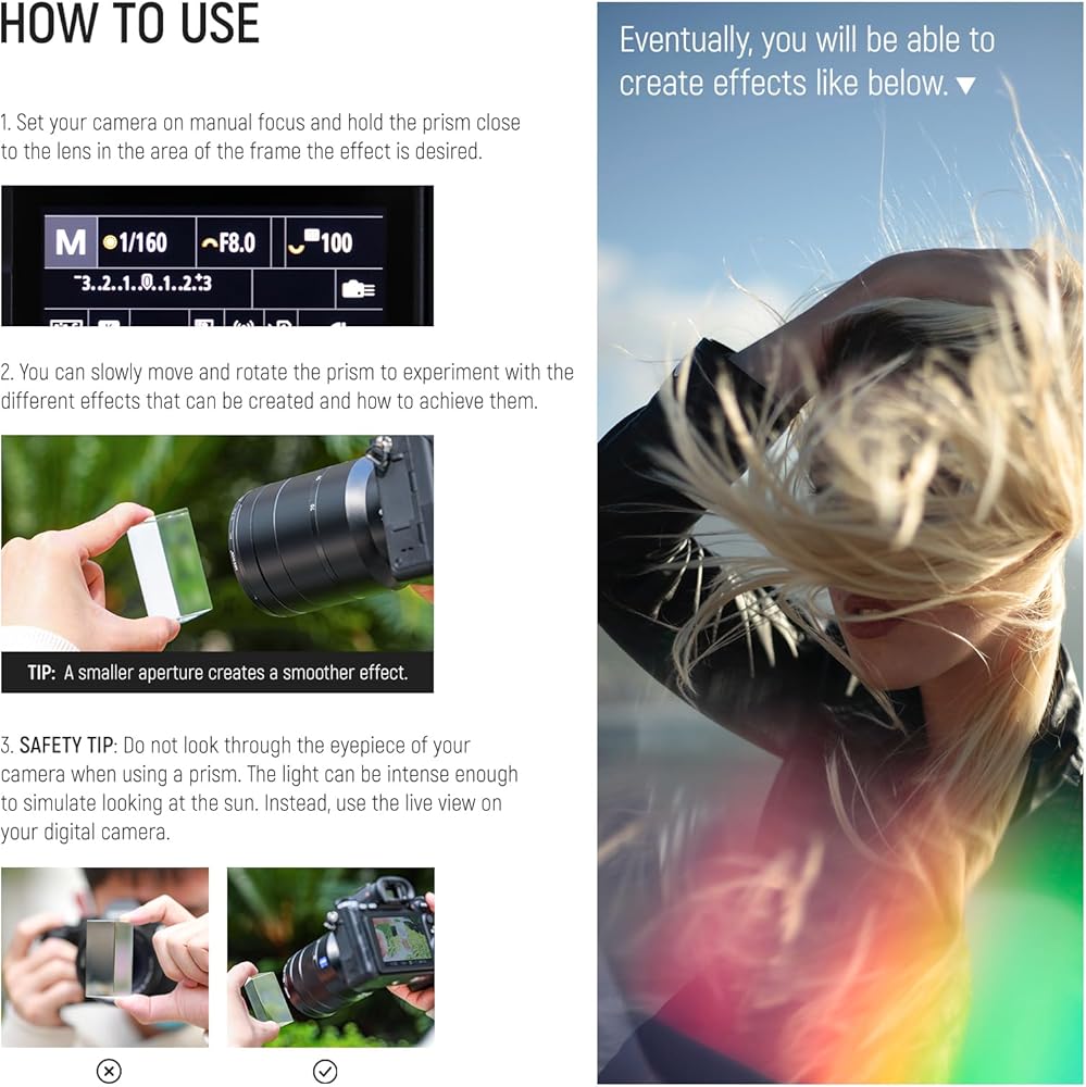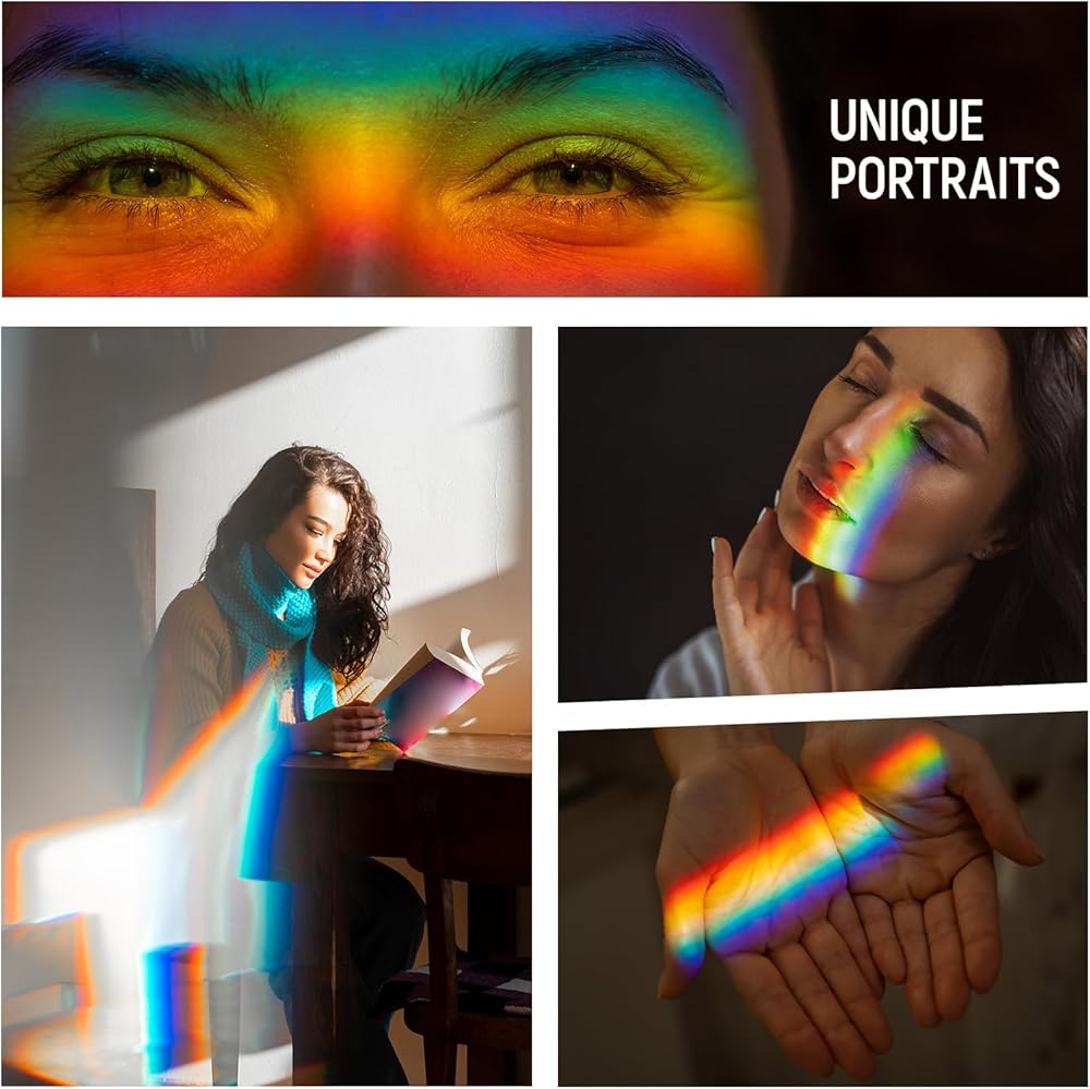 • 【Broad Application】 Designed to add creative effects to your photoshoots, including rainbows, lens flare, and color cast. Perfect for portraits, album covers, wedding photos, landscapes, science projects, light analysis, and more