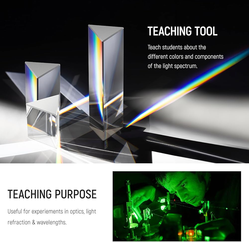 • 【3 Length Options】 3 prisms are 6" (15cm), 4" (10cm), and 2.4" (6cm) long, respectively, easy for handheld use. And they all have a 1.3" x 1.3" x 1.3" (3.4 x 3.4 x 3.4cm) equilateral triangle base that can stand stably on the table
