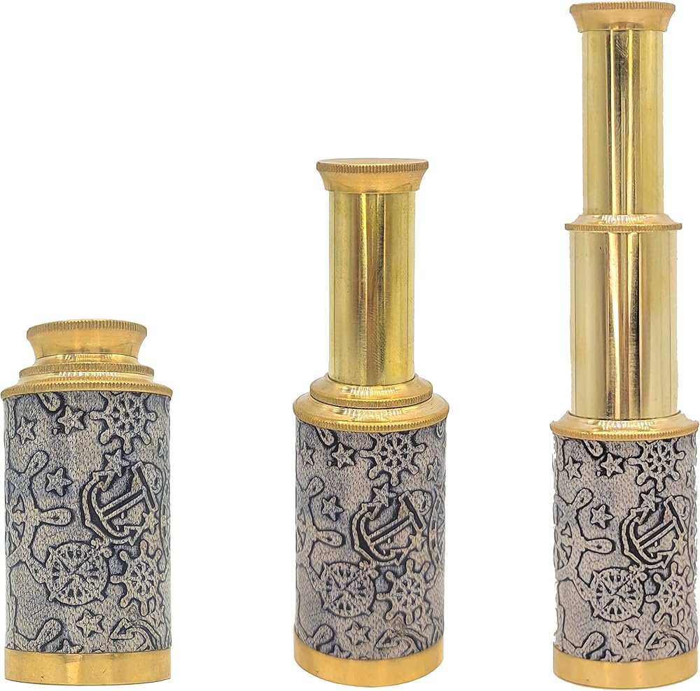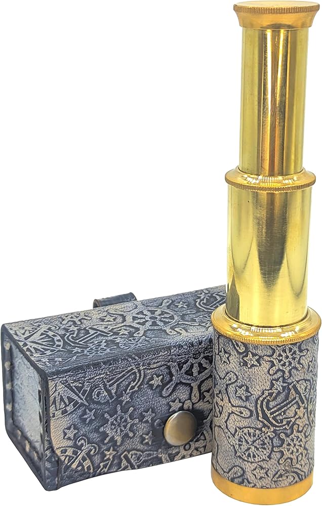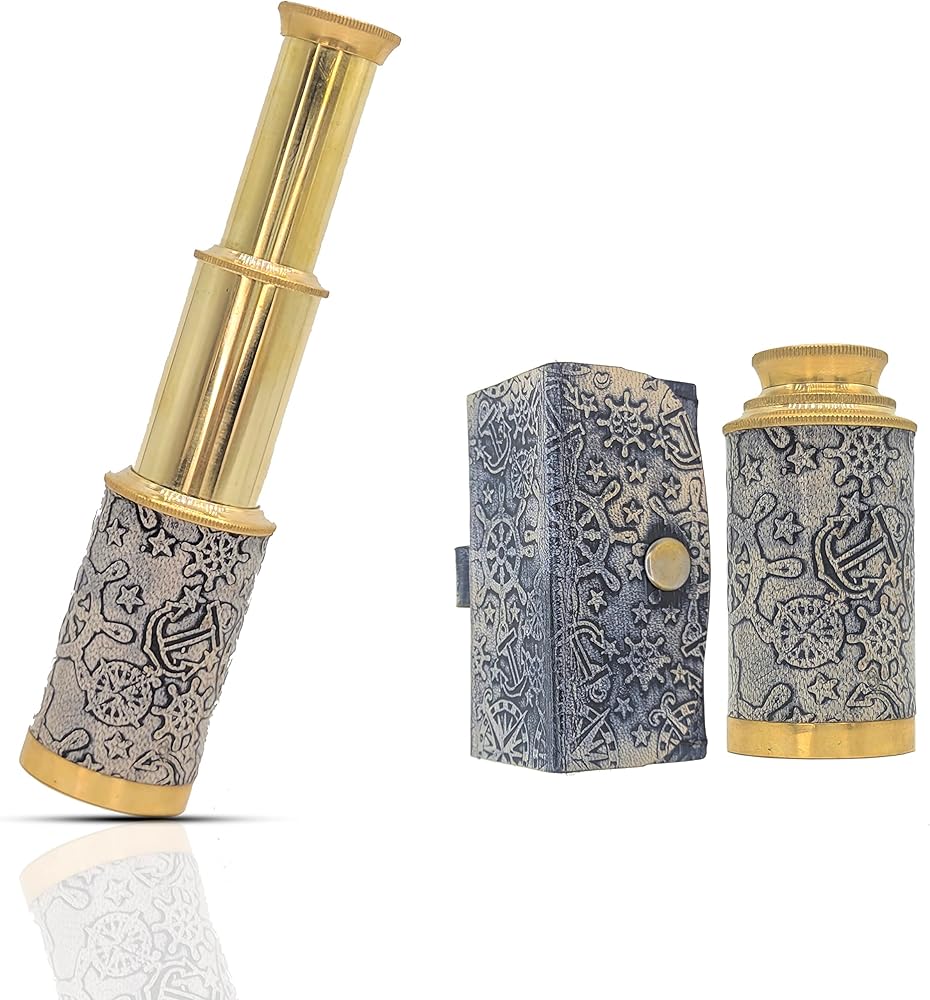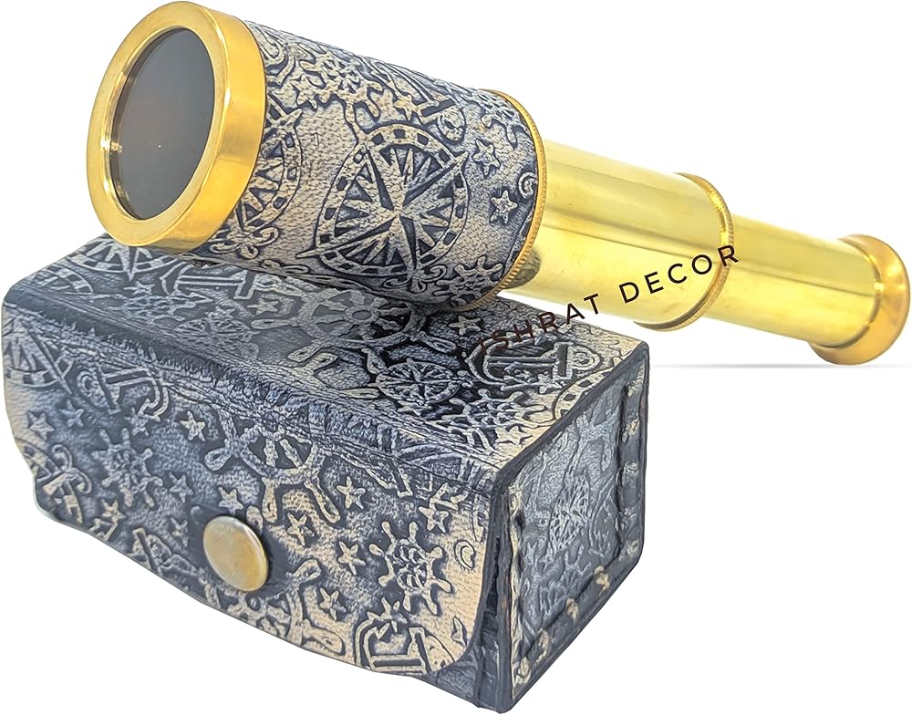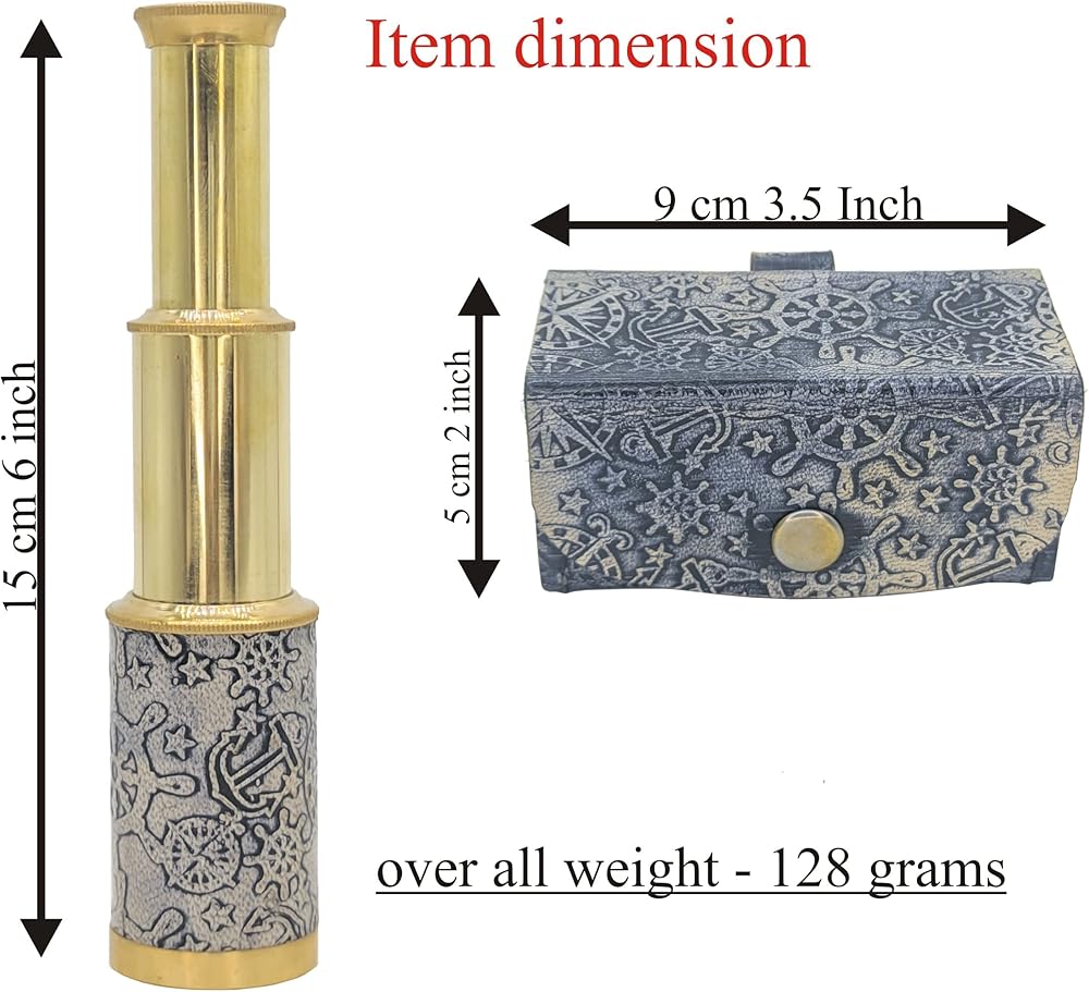 مادة المنتج: مصنوع من النحاس والجلد (جراب جلدي)، يتميز التلسكوب بلمسة نهائية من النحاس اللامع وحقيبة جلدية مصنوعة في فن عتيق. (مغطى بالجلد الأسود)