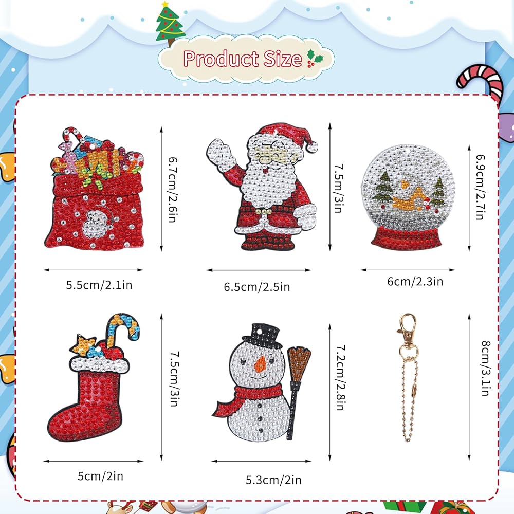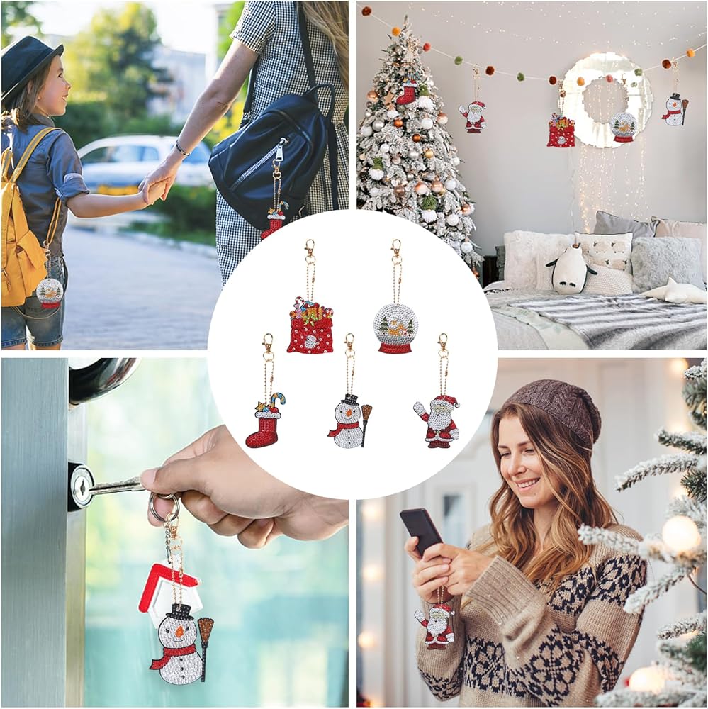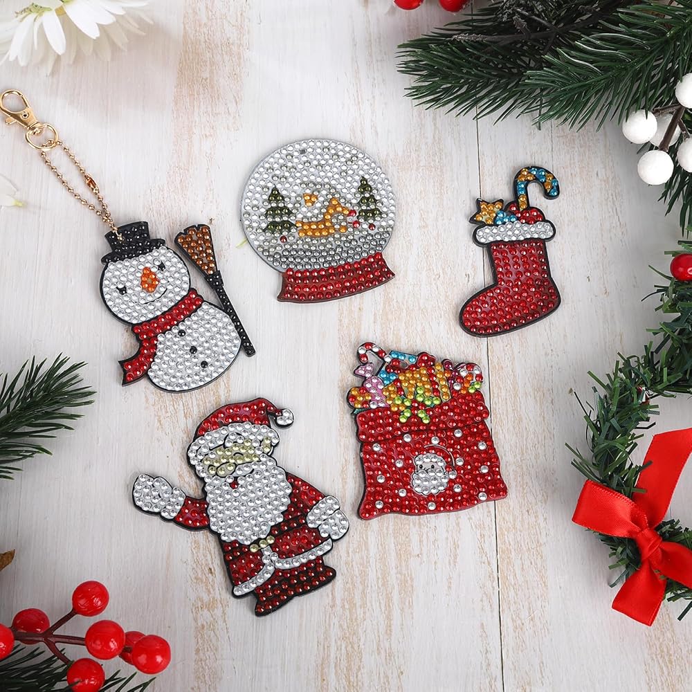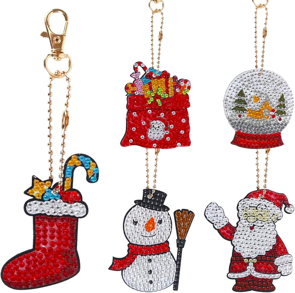5 × سلسلة مفاتيح مرسومة بالألماس لعيد الميلاد