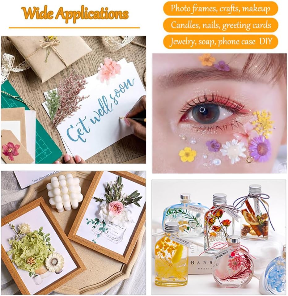 هذه الزهور المجففة المضغوطة رومانسية وساحرة، وهي هدايا مراعية وعملية لأفراد عائلتك وأصدقائك الذين يحبون صناعة الحرف اليدوية وإظهار ذوقك الخاص ونقل حبك ورعايتك ولطفك إليهم، وتقريب العلاقات والمشاعر مع بعضهم البعض.