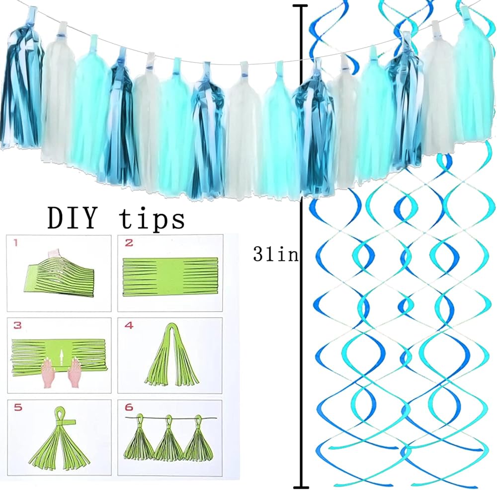 مجموعة ديكورات حفلات أعياد الميلاد الزرقاء مثالية للتعليق من الفروع والأسقف، أو فتحها على الحائط، وتعليق طاولات الحلوى، والخلفيات، ومساحة الحفلات العامة، كما أن تزيين مجموعة الألوان المتكاملة هو أيضًا مكان مثالي جدًا تريدينه تزيين.