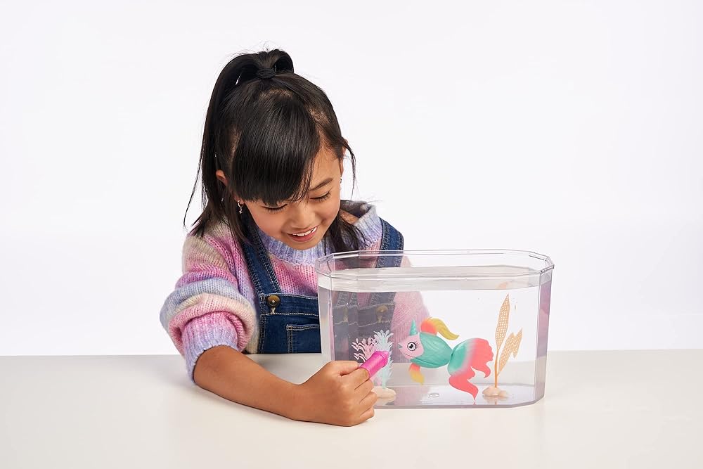 سمكة حصرية ذات طابع وحيد القرن: Fantasea هي سمكة سحرية حصرية ذات طابع أحادي القرن. إنها ناعمة وحريرية الملمس وستسبح وتتحرك برشاقة عبر الماء، تمامًا مثل السمكة الحقيقية!