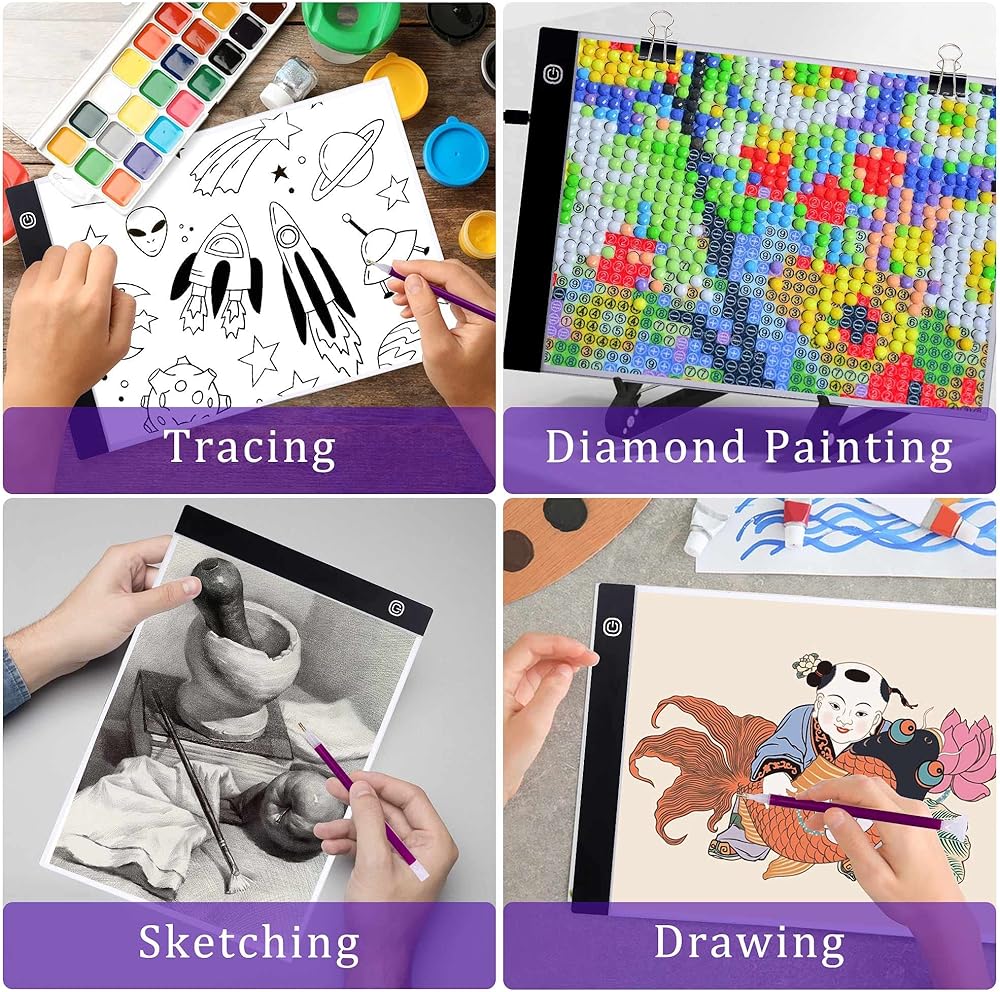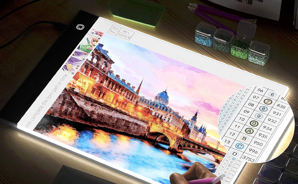 【Multiple Usage】The light board not only for diamond painting kits, but tracing, stenciling, sketching, drawing etc. Wide application with light pad.