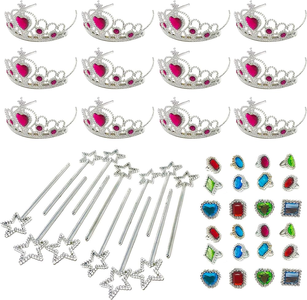 مجموعة ألعاب أميرات إكسسورات من 48 قطعة تتضمن 12 تاجًا مرصعًا بالجواهر. 12 عصا مرصعة بالمجوهرات و24 حلقة مرصعة. مثالية لكل فتاة صغيرة أن تكون أميرتها.