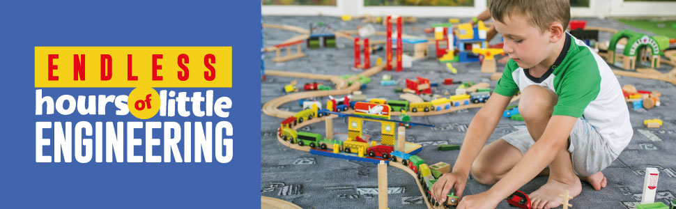 أضف إلى مجموعتك: هذه المجموعة متوافقة مع جميع العلامات التجارية المشهورة لمجموعات القطارات الخشبية، بما في ذلك Brio و Chuggington، Thomas وغيرها. استخدم هذه المجموعة بمفردها أو أضف المسارات والسيارات كملحقات وحزمة توسيع لمجموعة موجودة