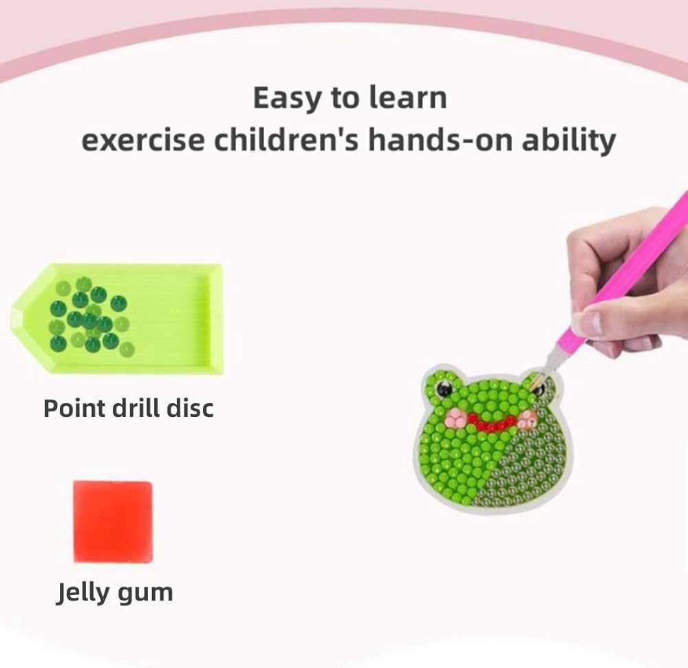 Simple to make: first, peel off the transparent protective film on the surface of the diamond sticker, then immerse enough clay into the sticky pen, hold the front of the diamond with the pen, and finally, put the diamond on the corresponding number. Each diamond bag has letters/numbers/symbols, which is easy to operate. Children can make independently and enjoy DIY fun.