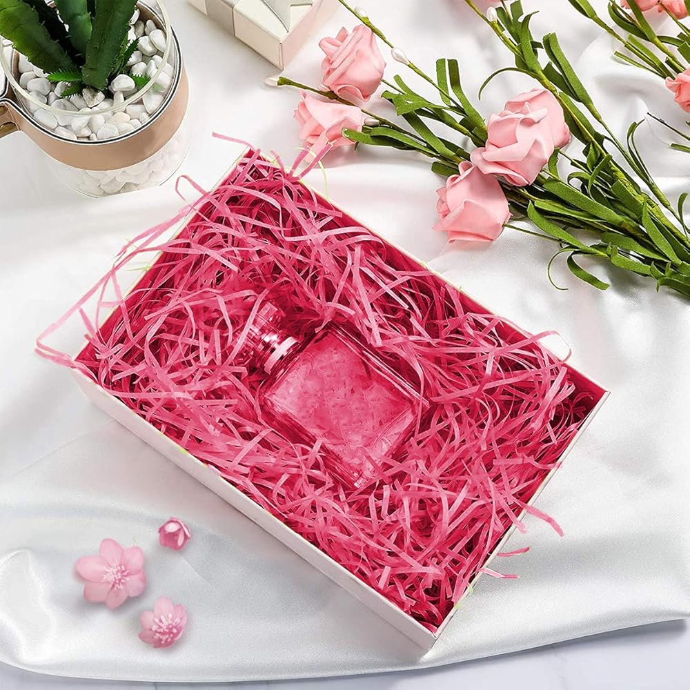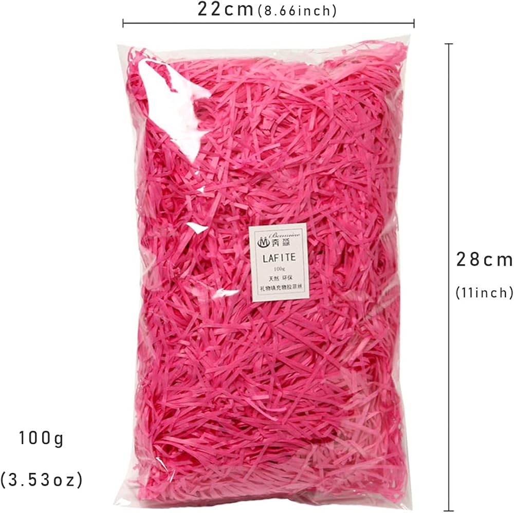 سلة عشب، ورق مناديل مقطوع مجعدة، ورق قابل لاعادة التدوير، ورق رافيا قابل لاعادة التدوير، لتغليف صندوق هدايا عيد الفصح، 100 غرام 3.54 اونصة لتزيين الحفلات (احمر وردي)