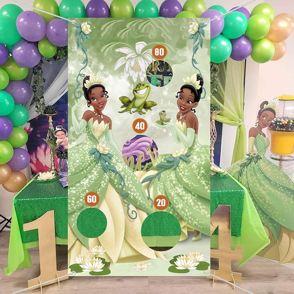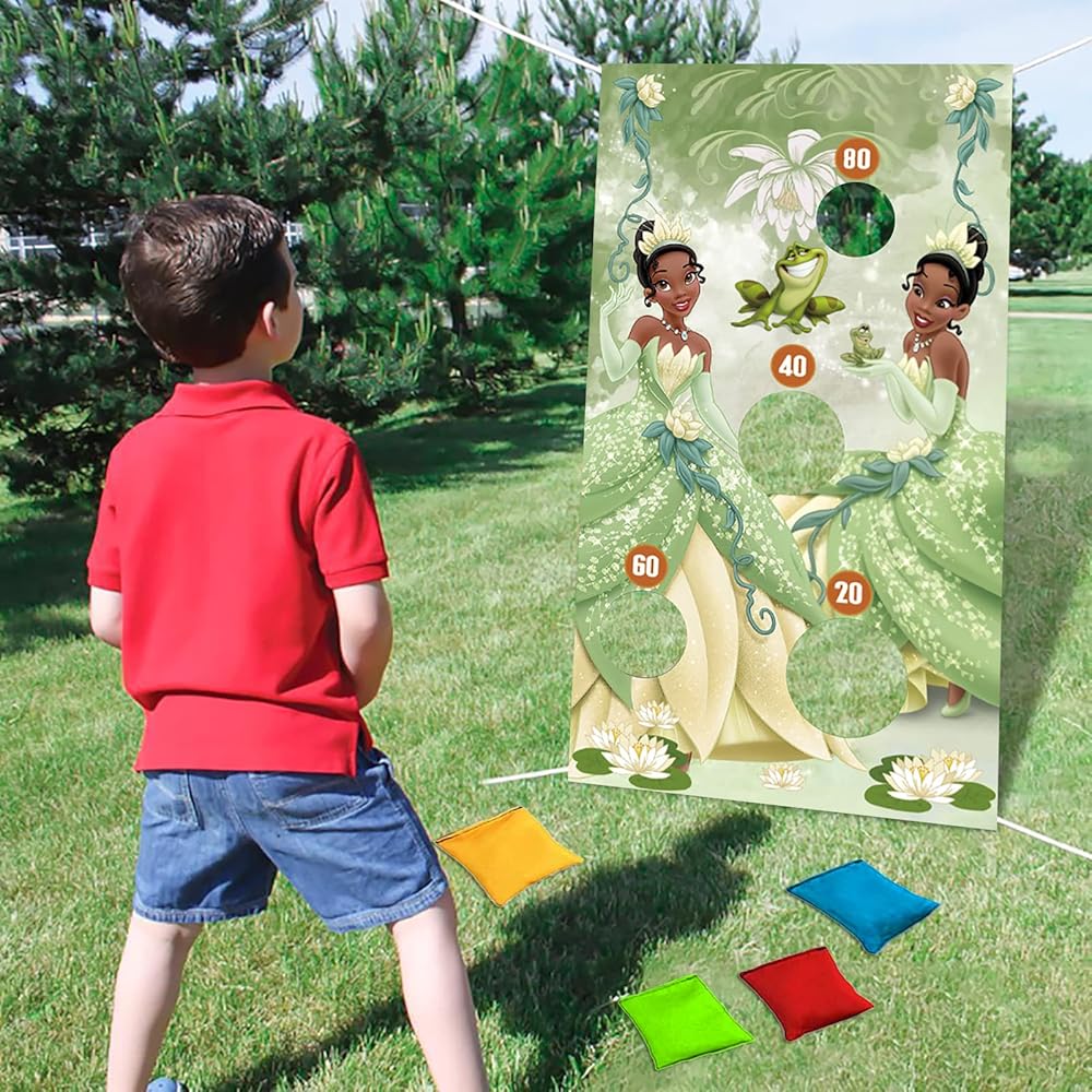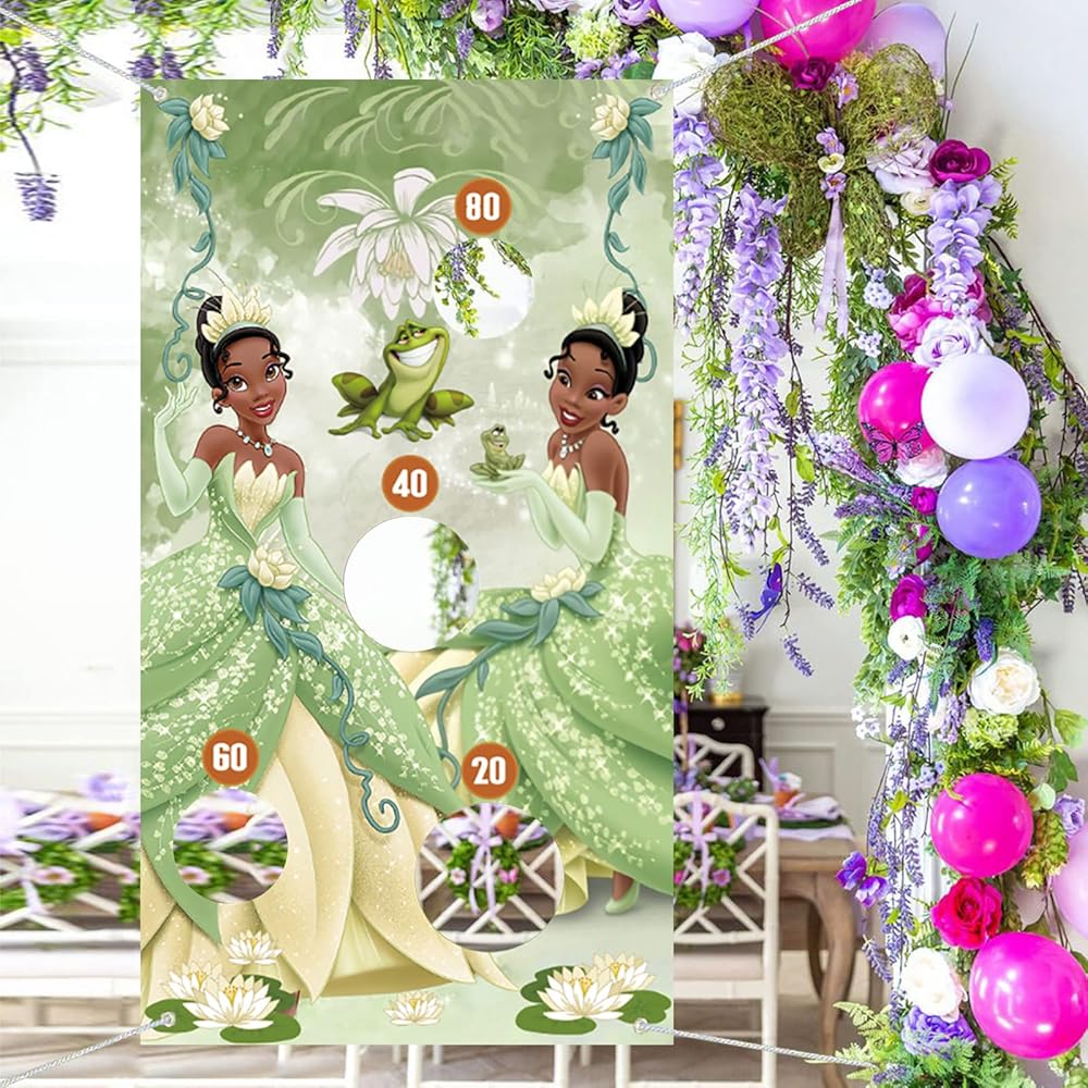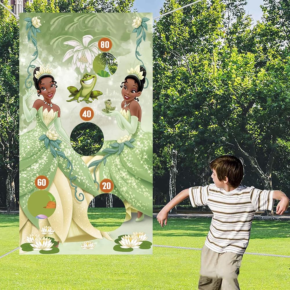 لافتة ألعاب القذف للأميرة والضفدع مع 4 أكياس فول، ألعاب ديكورات الأميرة تيانا للأطفال، لعبة القذف الداخلية والخارجية تحت عنوان الأميرة تيانا، مستلزمات حفلات أعياد الميلاد