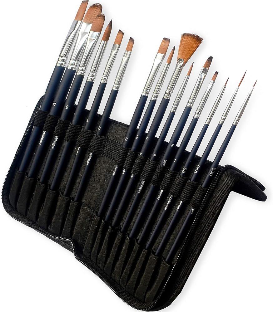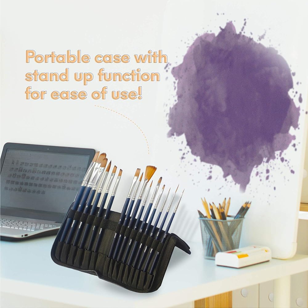 فرش الطلاء - مجموعة فرش طلاء احترافية مكونة من 15 فرشاة للألوان المائية والأكريليك والغواش والرسم الزيتي - شعر نايلون عالي الجودة مع حقيبة منظمة - مثالية للأطفال والطلاب والفنانين