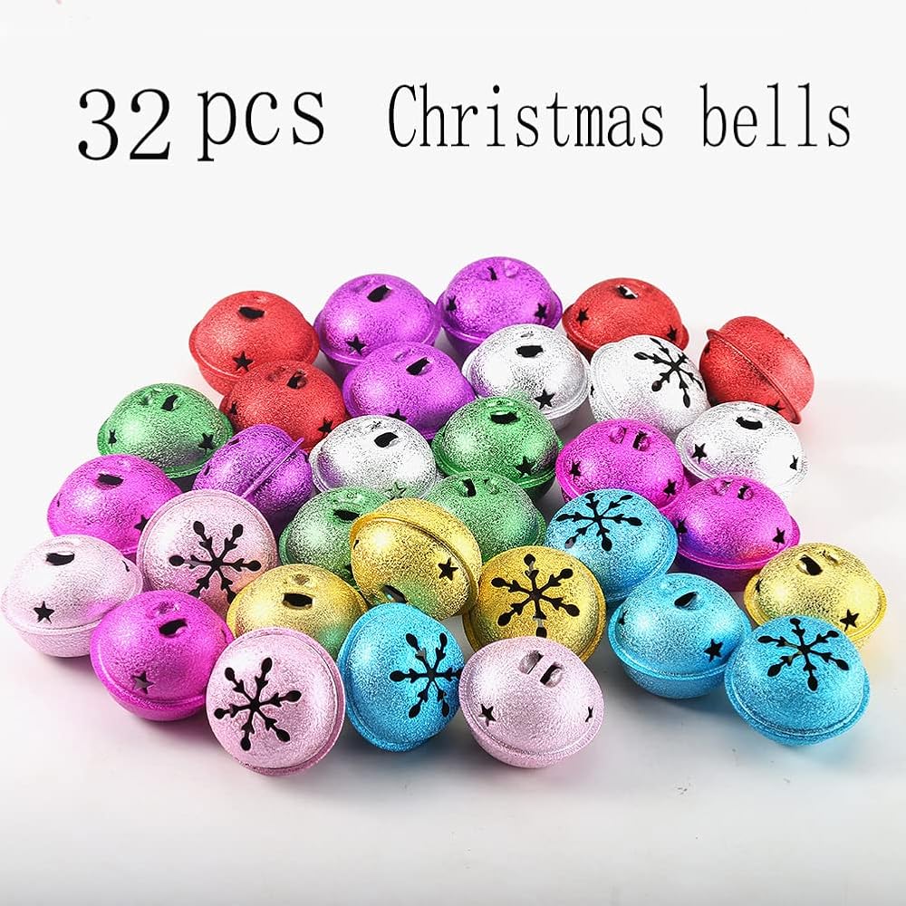 أجراس عيد الميلاد Zsail 32 قطعة أجراس جلجل مع قطع ندفة الثلج 1.6 بوصة/ 40 مم أجراس عيد الميلاد الحرفية لأشجار عيد الميلاد وديكورات المنزل (اللون-A)