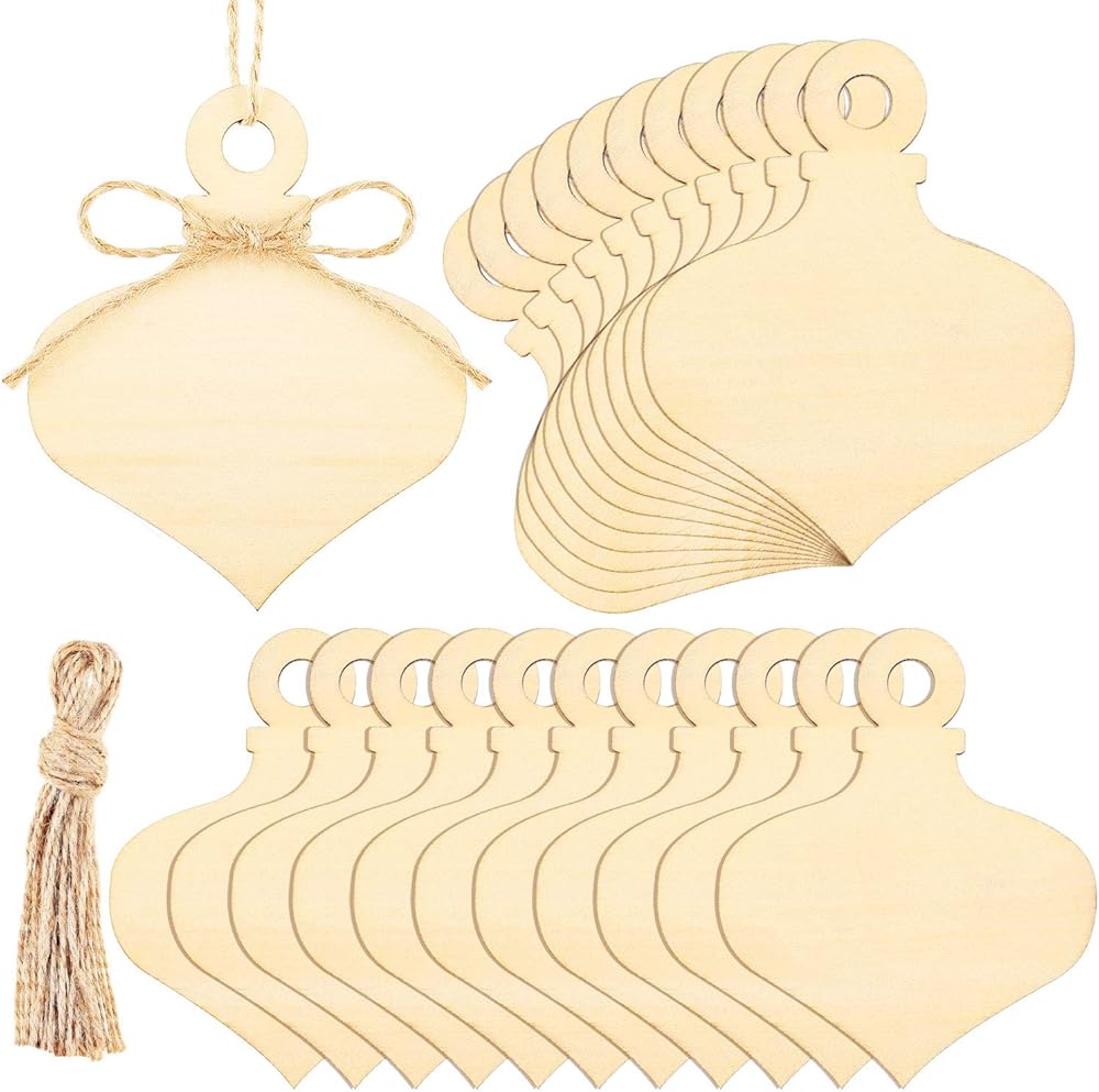 36 قطعة DIY عيد الميلاد الخشبية معلقة الحلي مع ثقب الحرف الخشبية قطع العلامة غير الانتهاء من شرائح الخشب الطبيعي مع حبال للحرف المركزية DIY عيد الميلاد الديكور