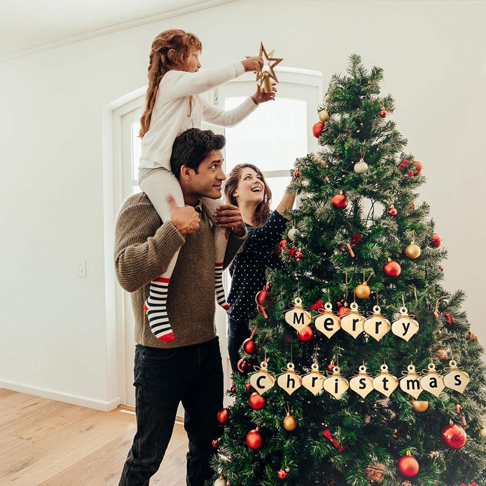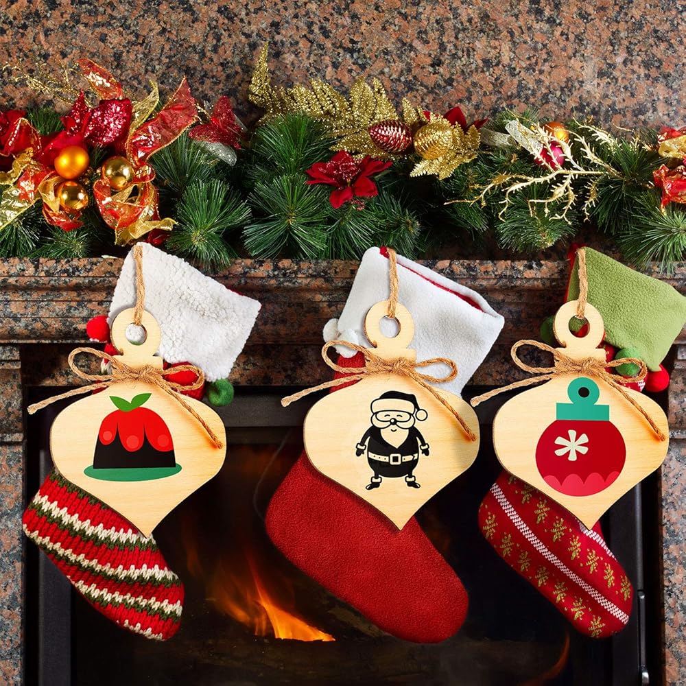 مريحة للتطبيق: تم تصميم كل قطعة من القواطع الخشبية المثقوبة مسبقًا بفتحة في الأعلى، يمكنك استخدام الحبل الذي نوفره لربط ثقب وتعليق رقائق الخشب حيث تريد، مثل شجرة عيد الميلاد أو النافذة أو الموقد ، مريحة لتطبيقها، كما أنها هدية مثالية لعيد الميلاد أو هدية الترحيب بالمنزل الجديد