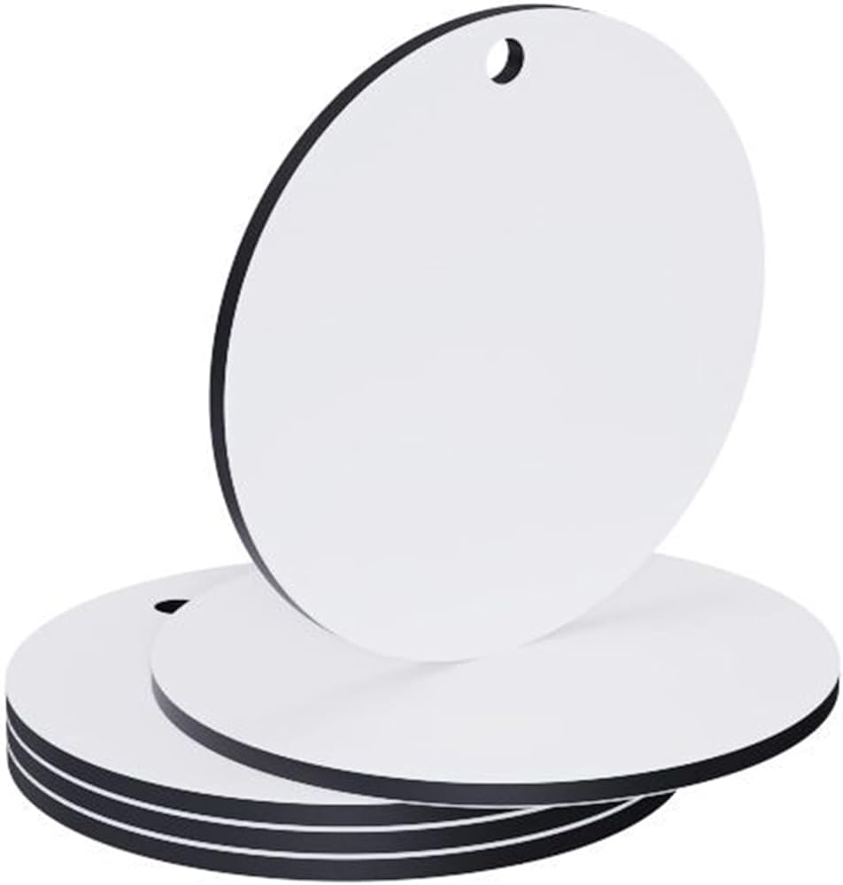 على الوجهين للتسامي: زخارف التسامي المستديرة الخاصة بنا مطلية بمادة التسامي على كلا الجانبين، يمكنك طباعة النمط الذي ترغب فيه على سطح هذه المعلقات من خلال تقنية التسامي، لإنشاء بعض الحرف اليدوية الشخصية، مثل زينة عيد الميلاد، وحقيبة الظهر علامة أو علامة هدية أو مشاريع حرفية أخرى.