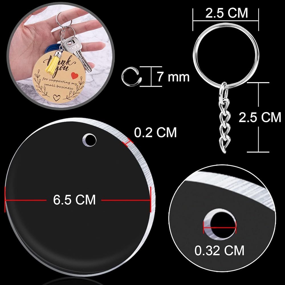 سهلة الاستخدام: سلسلة المفاتيح الأكريليك الفارغة مملوءة مسبقًا بفتحة قطرها 0.32 سم بحيث يمكنك ربط الأكريليك المستدير الفارغ بسلسلة المفاتيح والملحقات الأخرى بسهولة