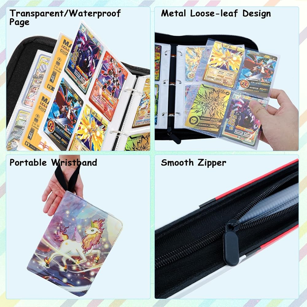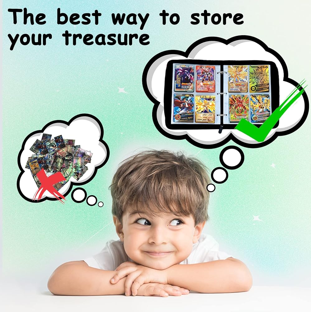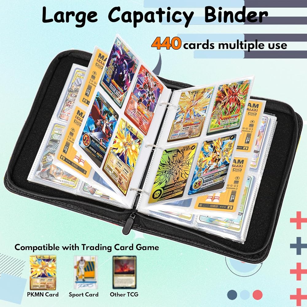 【تخزين ضخم】يمكن للحافظة ذات الأربعة جيوب أن تحمل ما يصل إلى 440 بطاقة مع 55 أكمام قابلة للإزالة، بفضل تصميمها المريح ثلاثي الحلقات الذي يجعل إضافة الأكمام أو إزالتها أمرًا سهلاً.