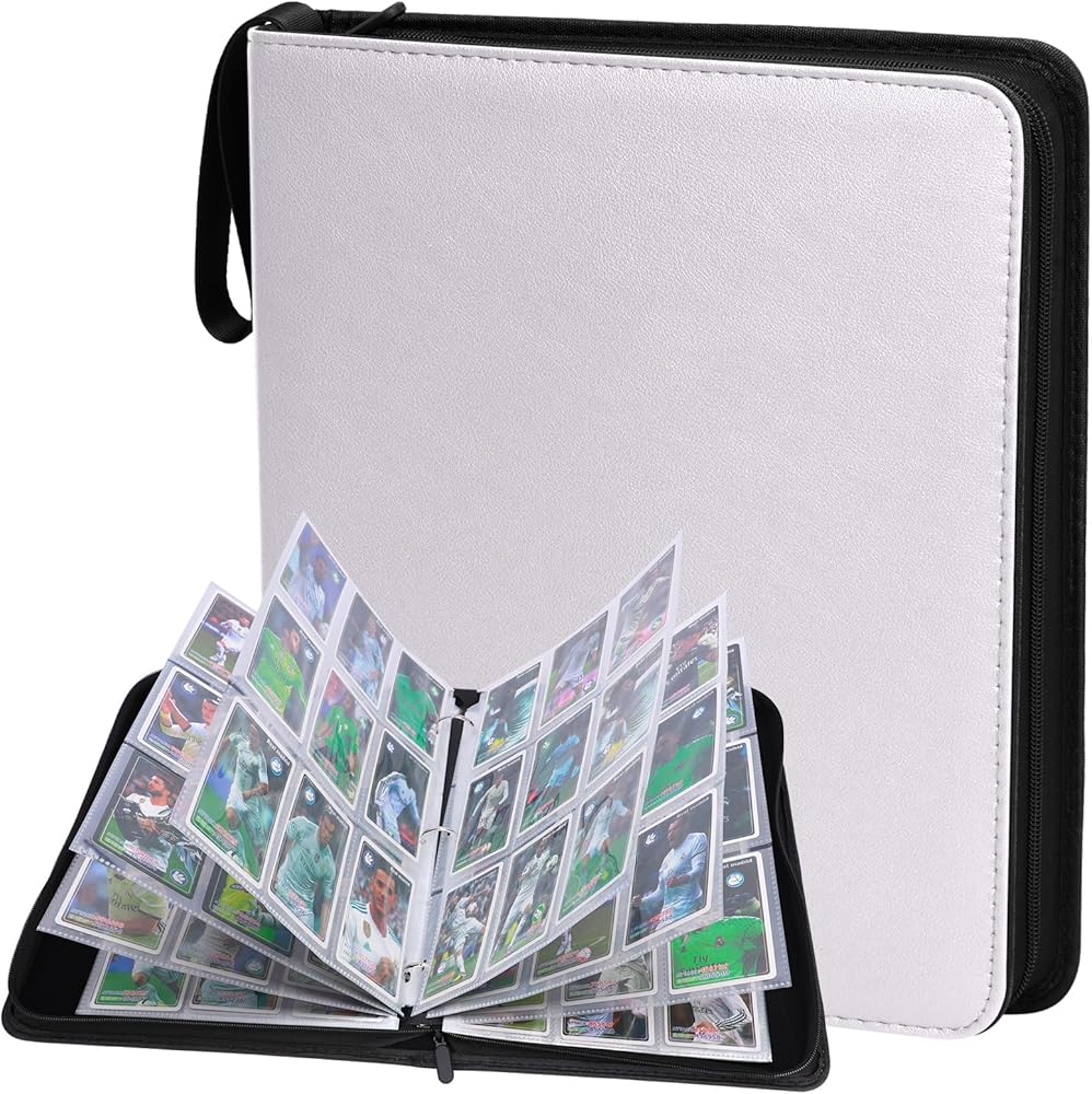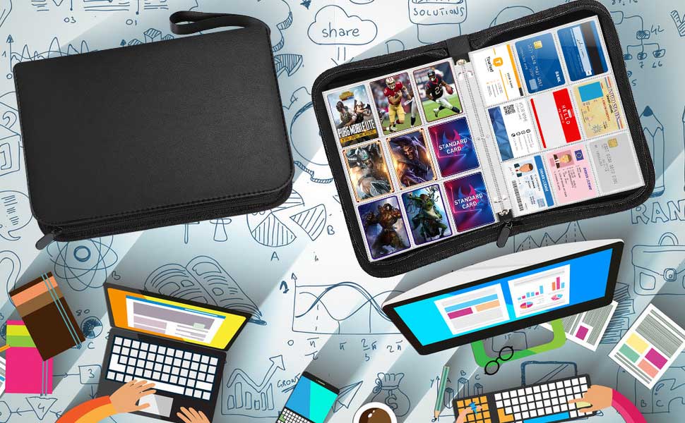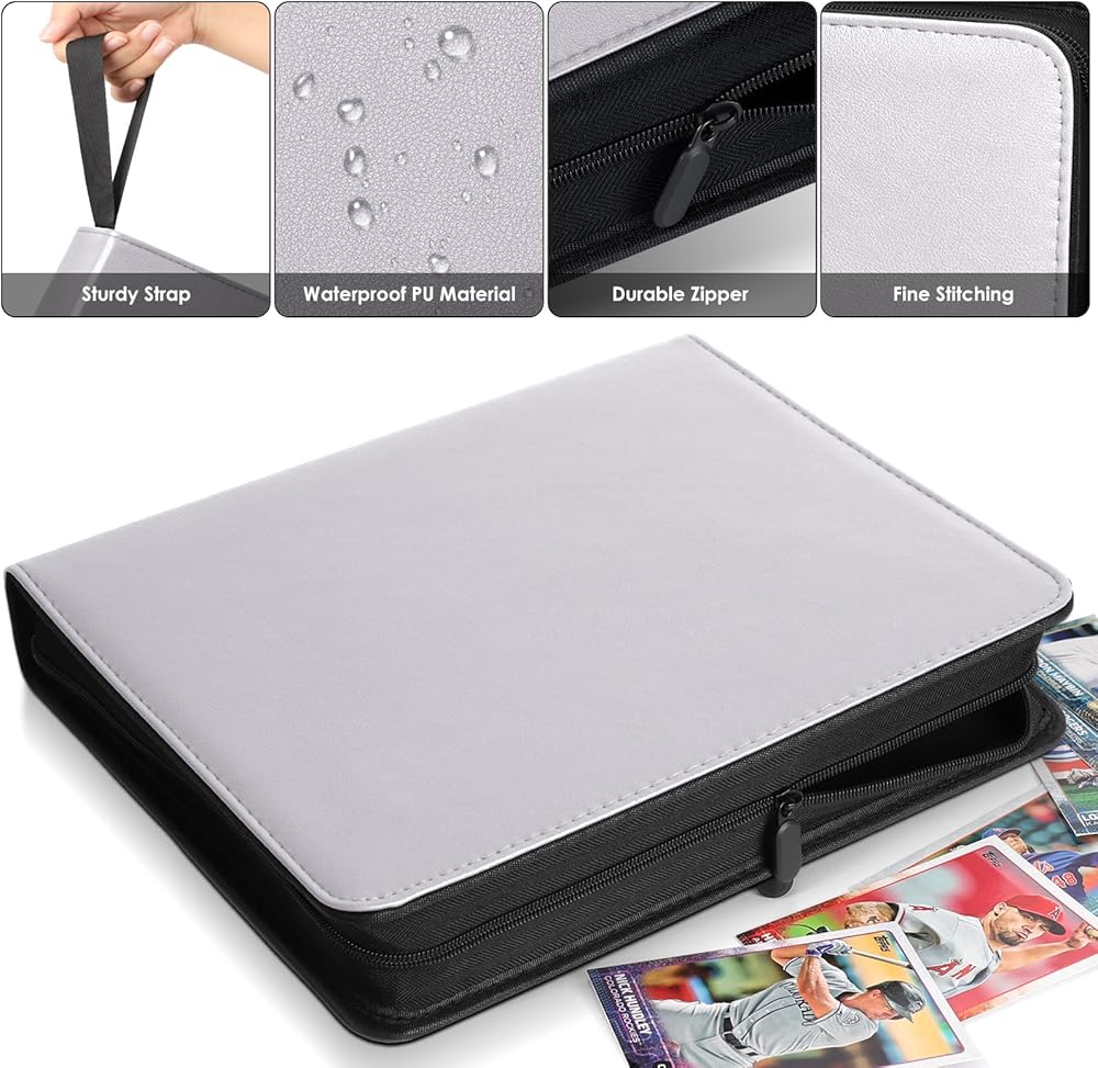 Toploader Binder للبطاقات: تسمح لك أدوات التحميل العلوية للبطاقات بإدخال البطاقة وإخراجها بسهولة، وتساعد على منع انسكاب بطاقات اللعبة عن طريق الخطأ. سحاب عالي الجودة لإغلاق أفضل، وحزام لسهولة الحمل.