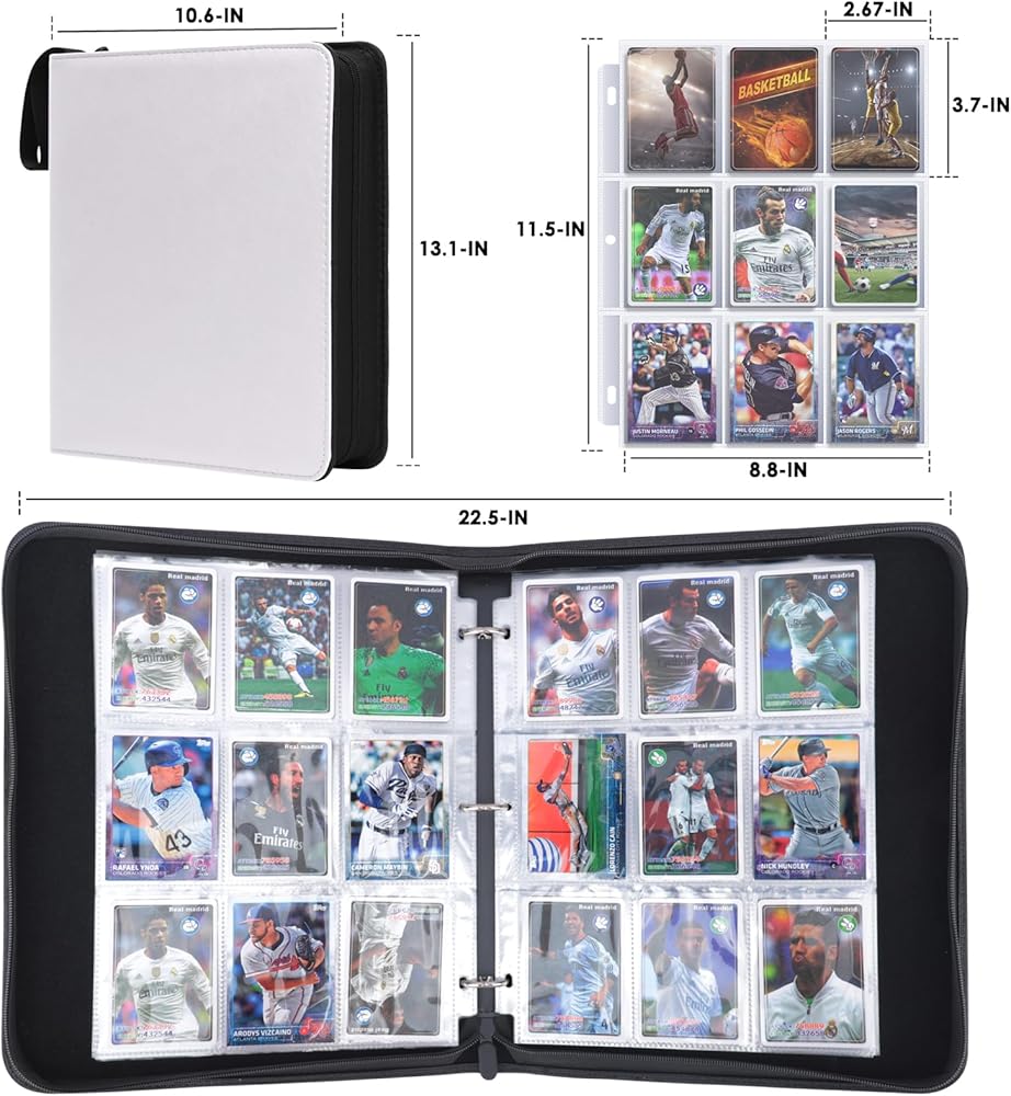 حافظة بطاقات ذات 9 جيوب: حافظة بطاقات التداول هذه ذات الأكمام مصنوعة من مادة البولي يوريثين المتينة الخالية من الأحماض، مع واقيات 50 صفحة تحتوي على 900 بطاقة، 9 جيوب لكل صفحة، لجعلها حافظة مجموعة بطاقات فائقة الاحترافية آمنة أرشيفية.