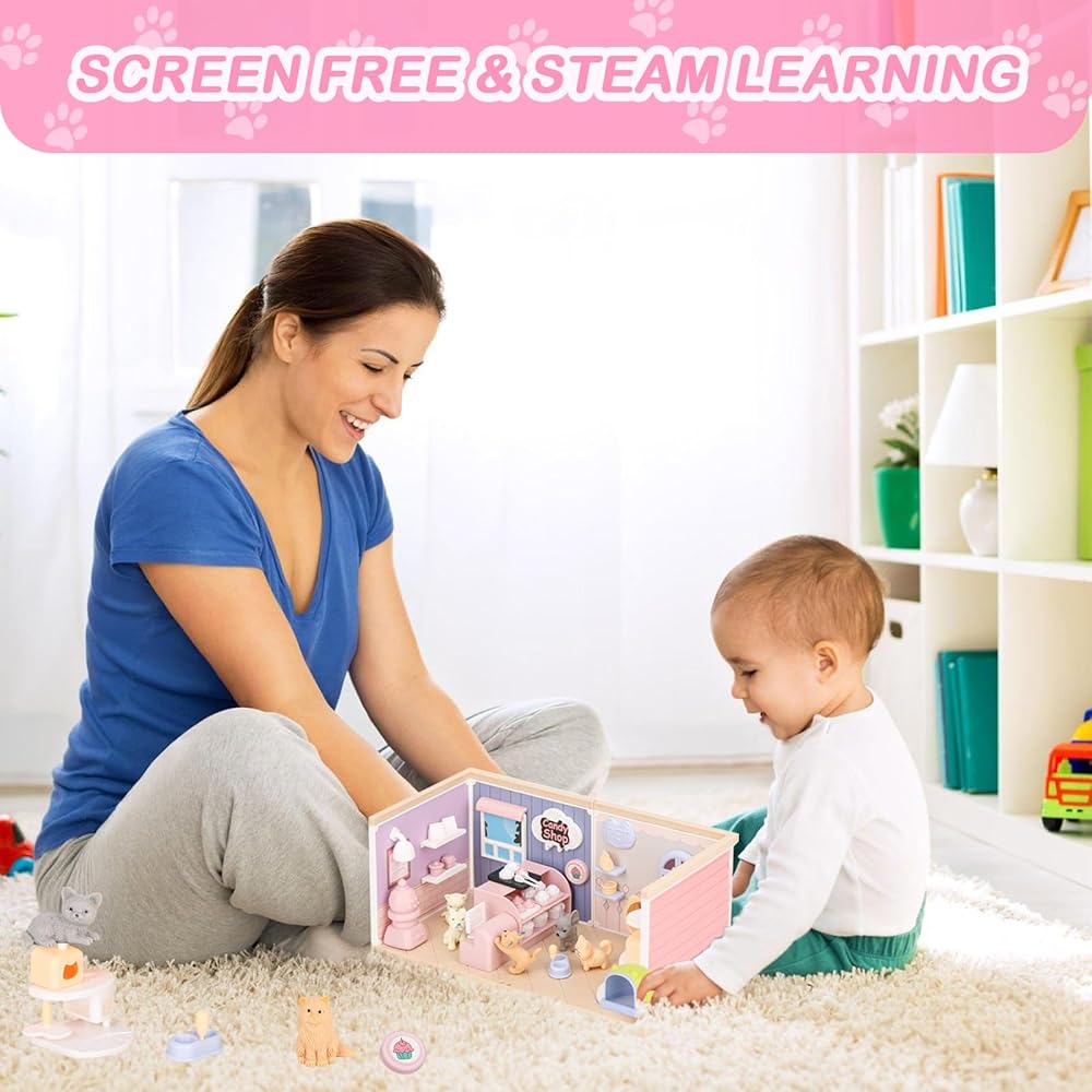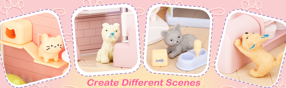 تصميم واقعي: هذه الألعاب التي تحمل طابع القطة مستوحاة من ألعاب الفتيات المشهورة وهدايا الفتيات الصغيرات، والتي تجمع بين بيت الدمى والألعاب الصغيرة. لقد استخدمنا القطط والكلاب الحقيقية كنماذج أولية لجعل الألعاب أكثر واقعية مثل مشهد الحيوانات الأليفة الحية الصغيرة، إنها لعبة ممتعة وتعليمية للأولاد والبنات