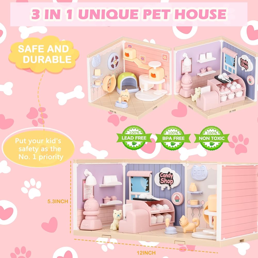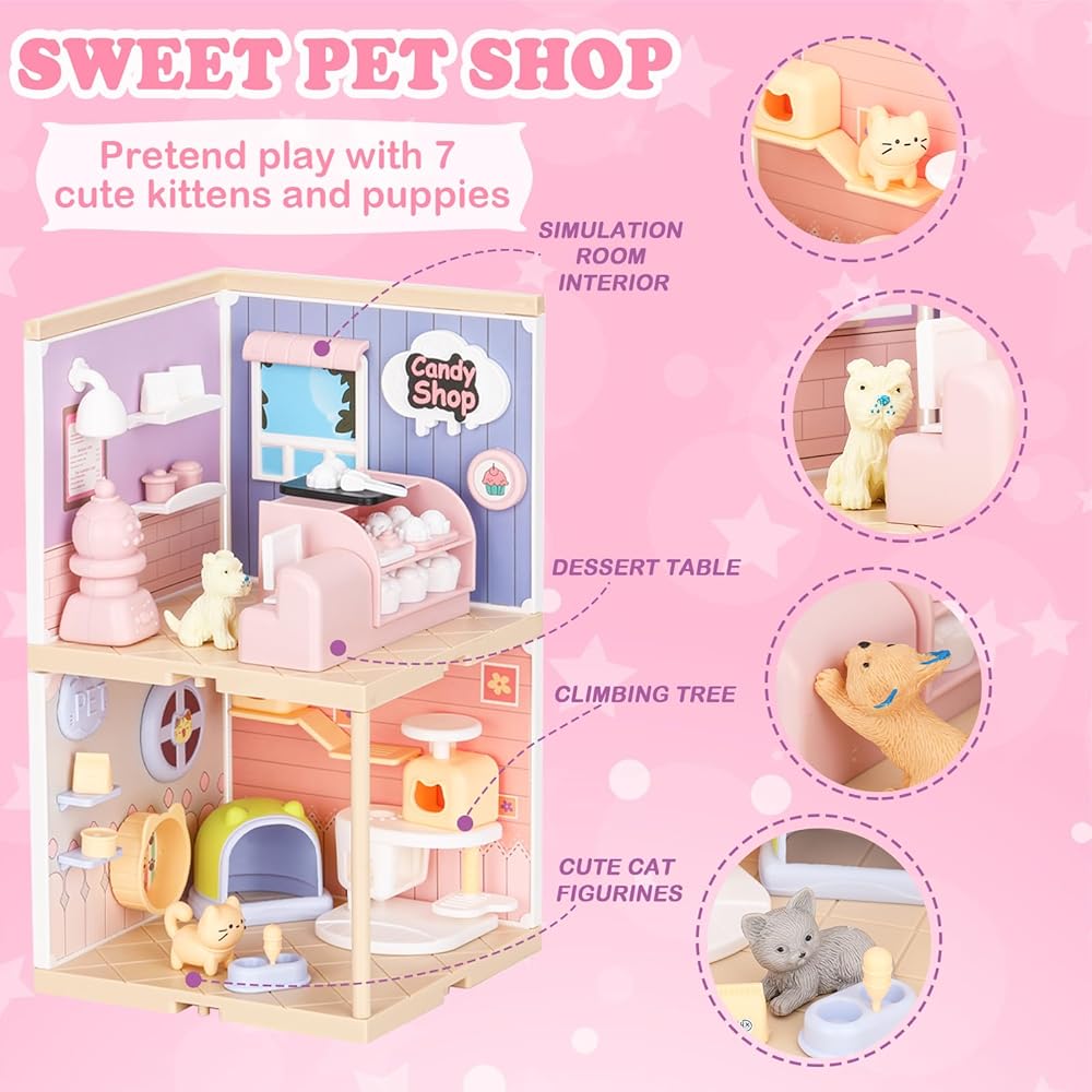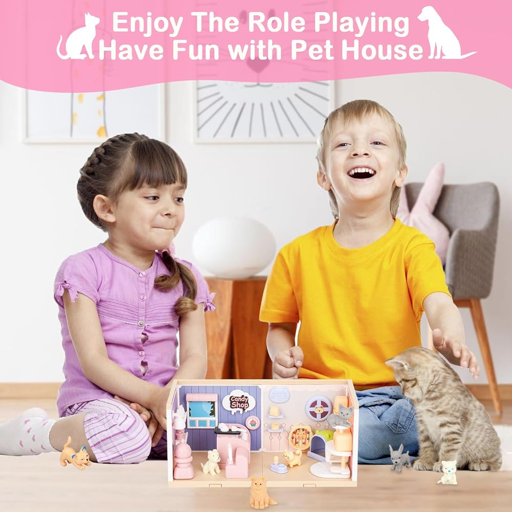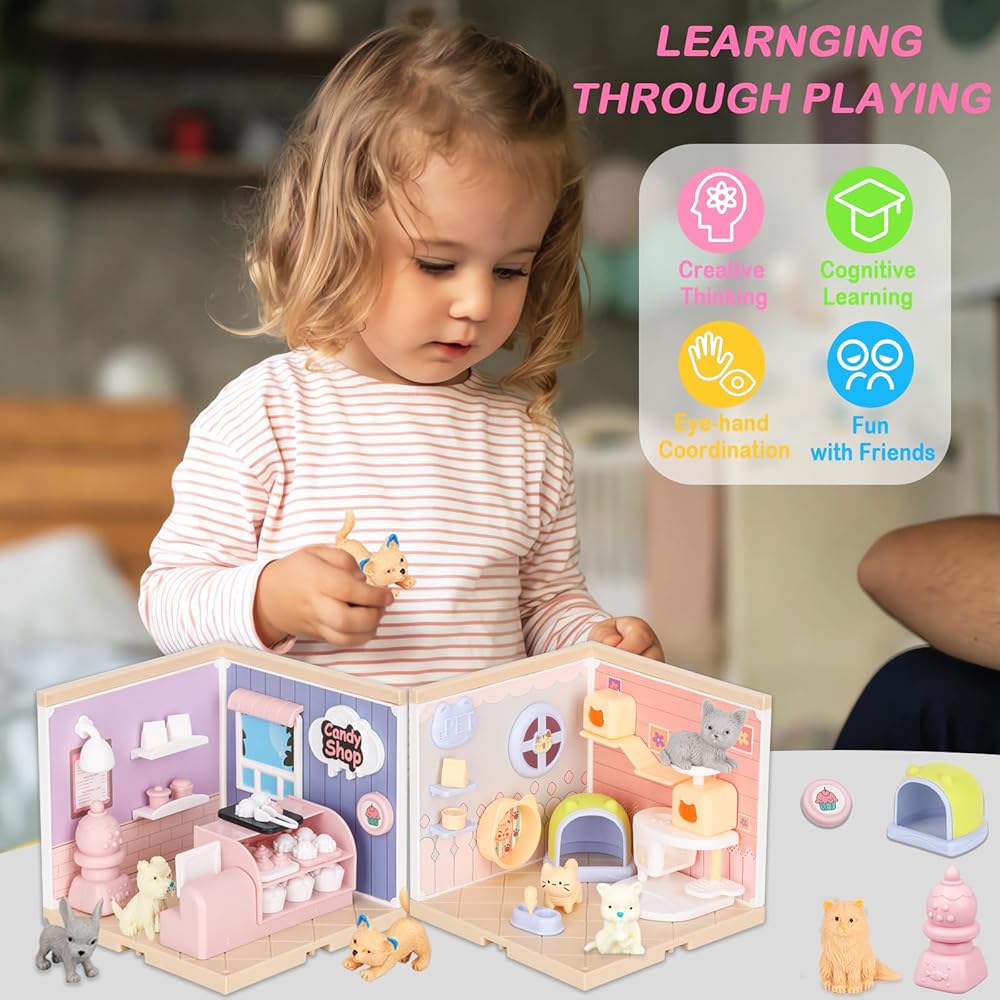 قم ببناء منزل أحلام الحيوانات الأليفة الخاص بك: إنه عنصر واحد من عالم الحيوانات الأليفة التظاهري TQQFUN. امنح محبي القطط والكلاب الصغار كل ما يحتاجونه لبناء منزل الحيوانات الأليفة الخاص بهم. تتضمن مجموعة اللعب هذه بيتًا واحدًا للقطط ومتجرًا واحدًا للحلوى، مما يسمح للأطفال بالانغماس الكامل في لعب دور الحيوانات الأليفة. يمكنهم إطعام، واللعب، وحتى السماح لحيواناتهم الأليفة بالنوم في منزلهم الخاص. سيحظى الأطفال الصغار بمتعة لا نهاية لها مع هذه التماثيل الجميلة للقطط والجرو.